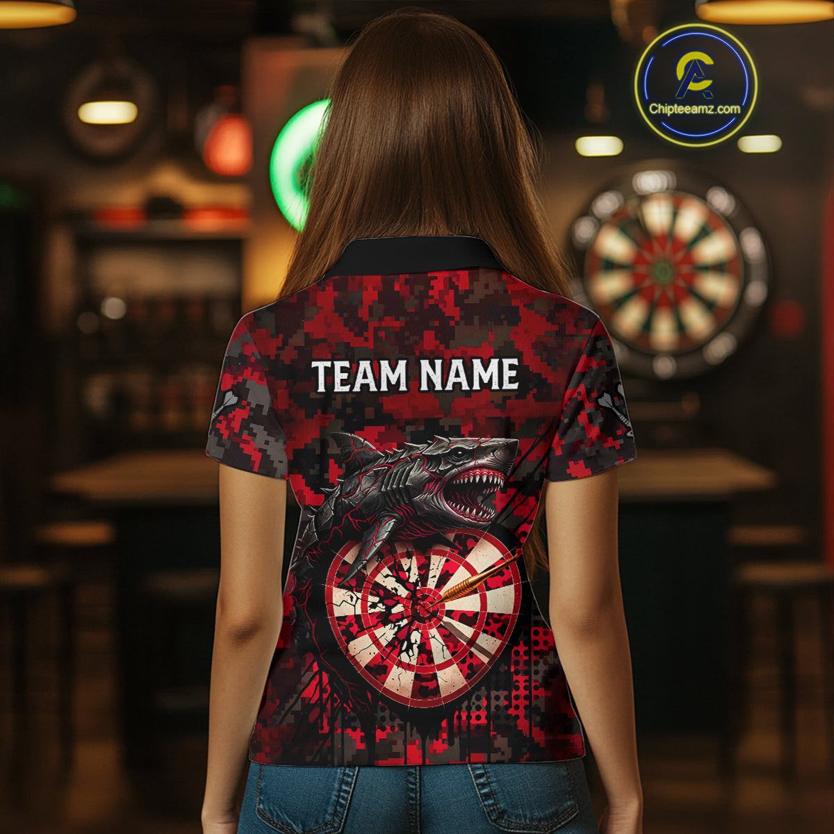Custom Red Digital Camo Dartboard Horror Shark Darts Polo Shirt For Women Dart Gifts NYN1965