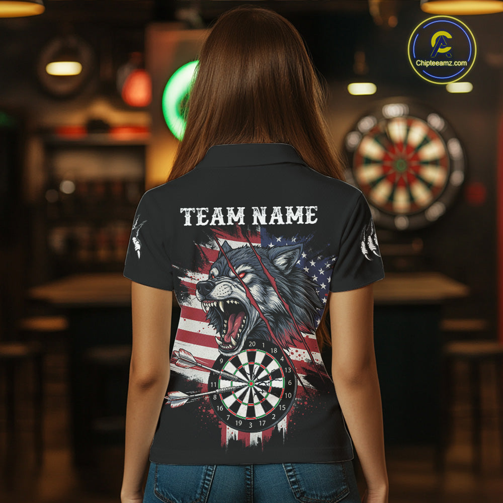 Fire American Flag Darts Polo Shirt For Women Custom Name & Team Patriotic Dart League Shirt NYN2053