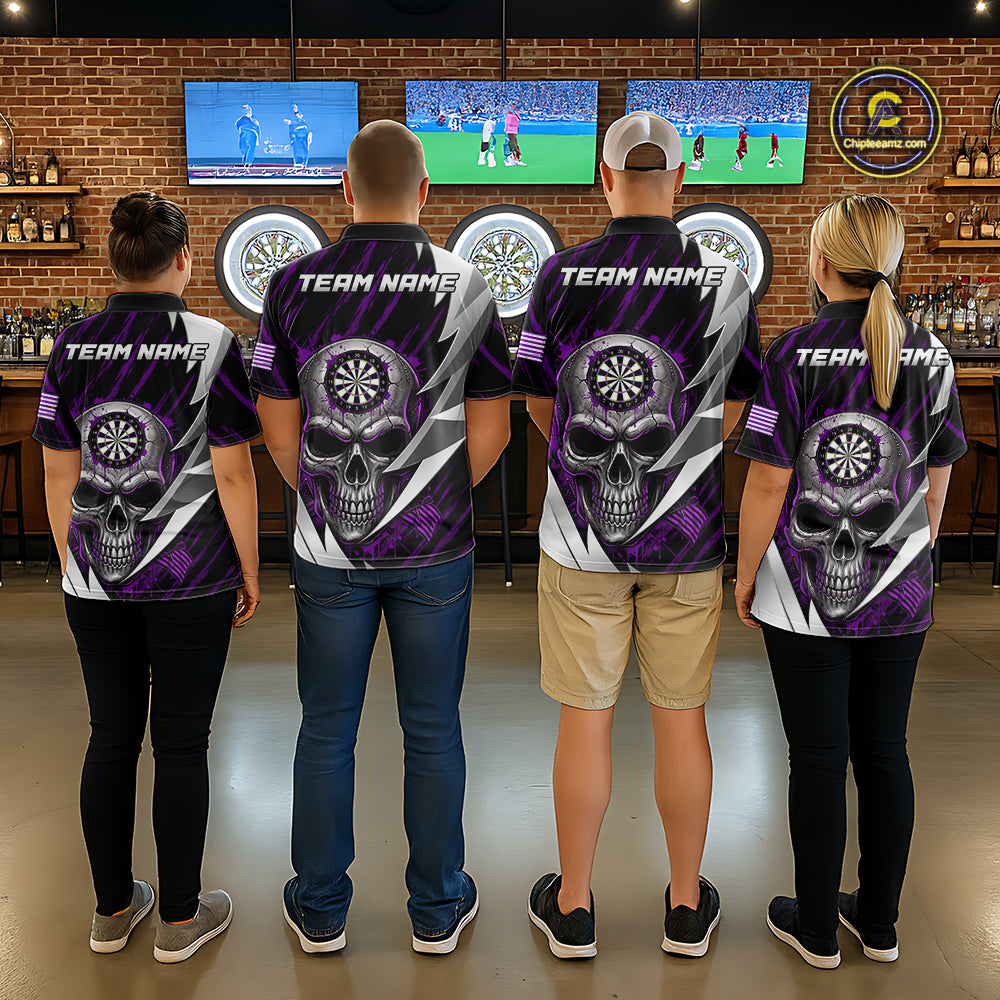 Silver Skull Purple Grunge US Flag Women Darts Polo Shirt Custom Name Dart League Jerseys NYN2062