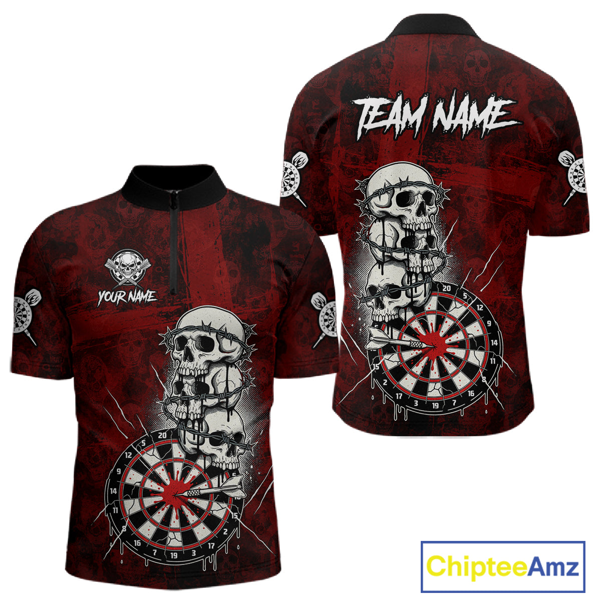 Custom Red Grunge Barbed Wire Grey Skull Dartboard Men Darts Polo Shirt Dart Jerseys NYN1977