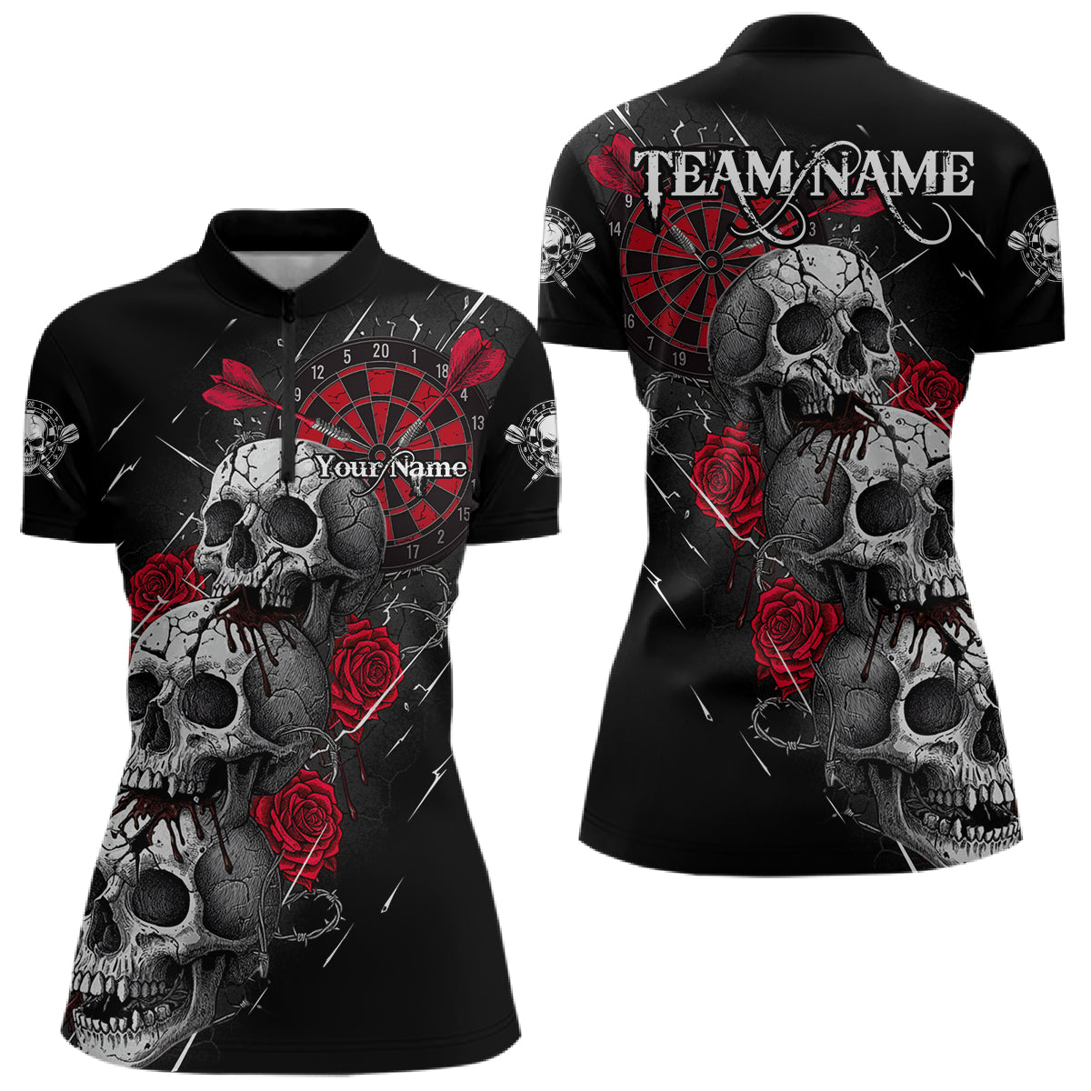 Custom Red Roses Blood Dripping Skull Dartboard Women Darts Quarter-Zip Shirt Dart Jerseys NYN1927