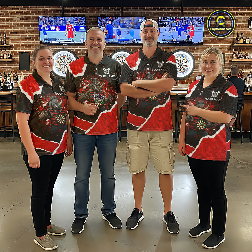 Black & Red Splatter Rhino Women Darts Quarter-Zip Shirt Custom Funny Team Dart League Jerseys NYN2067