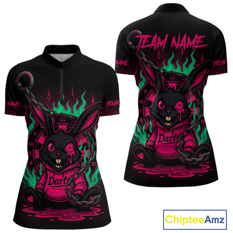 Flaming Rabbit & Pink Dartboard Darts Shirt For Women - Custom Name & Team Jersey NYN0593