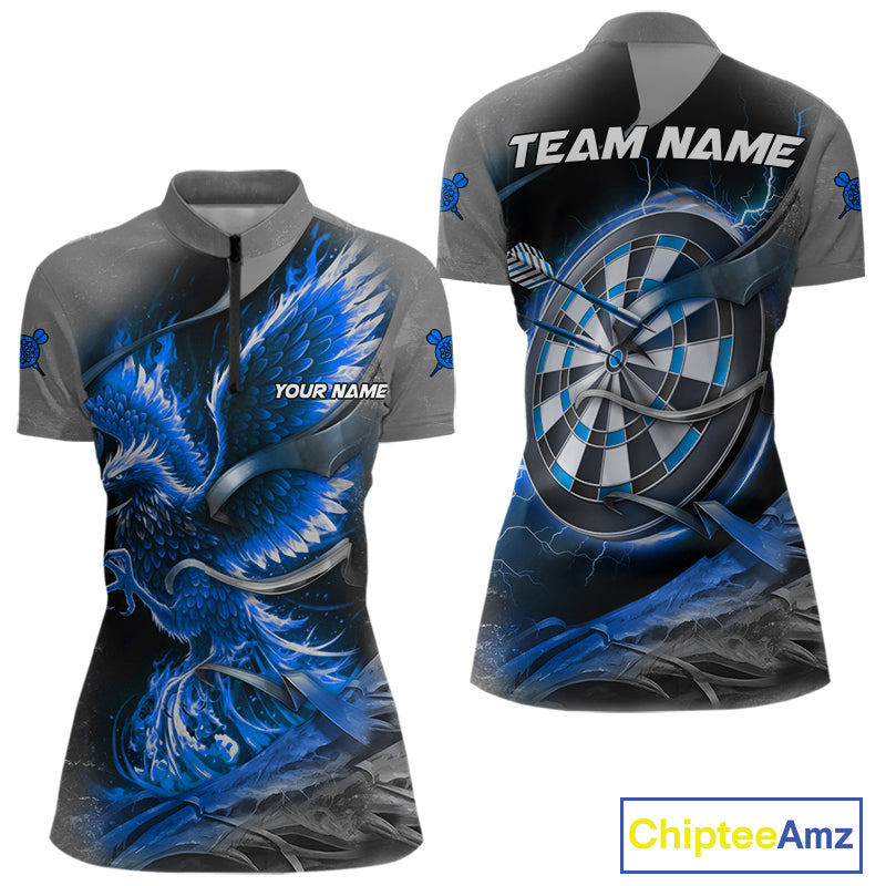 Personalized Phoenix Flame Darts Shirt For Women Custom Darts Team Jersey Polo & 1/4 Zip |Blue TDM5247