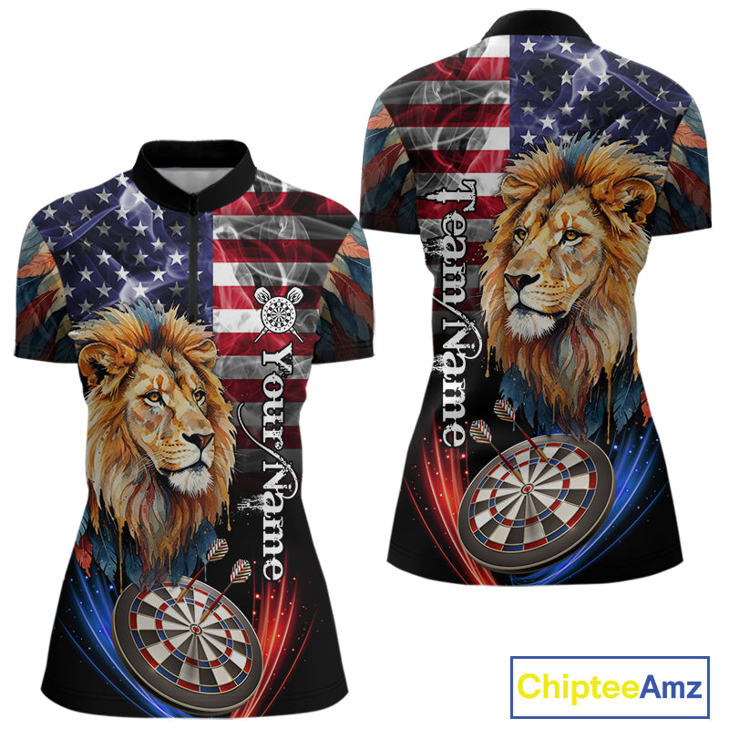 American Flag Smoke Lion Darts Shirt For Women Custom Patriotic Darts Jersey Team Polo, 1/4 Zip TDM5258