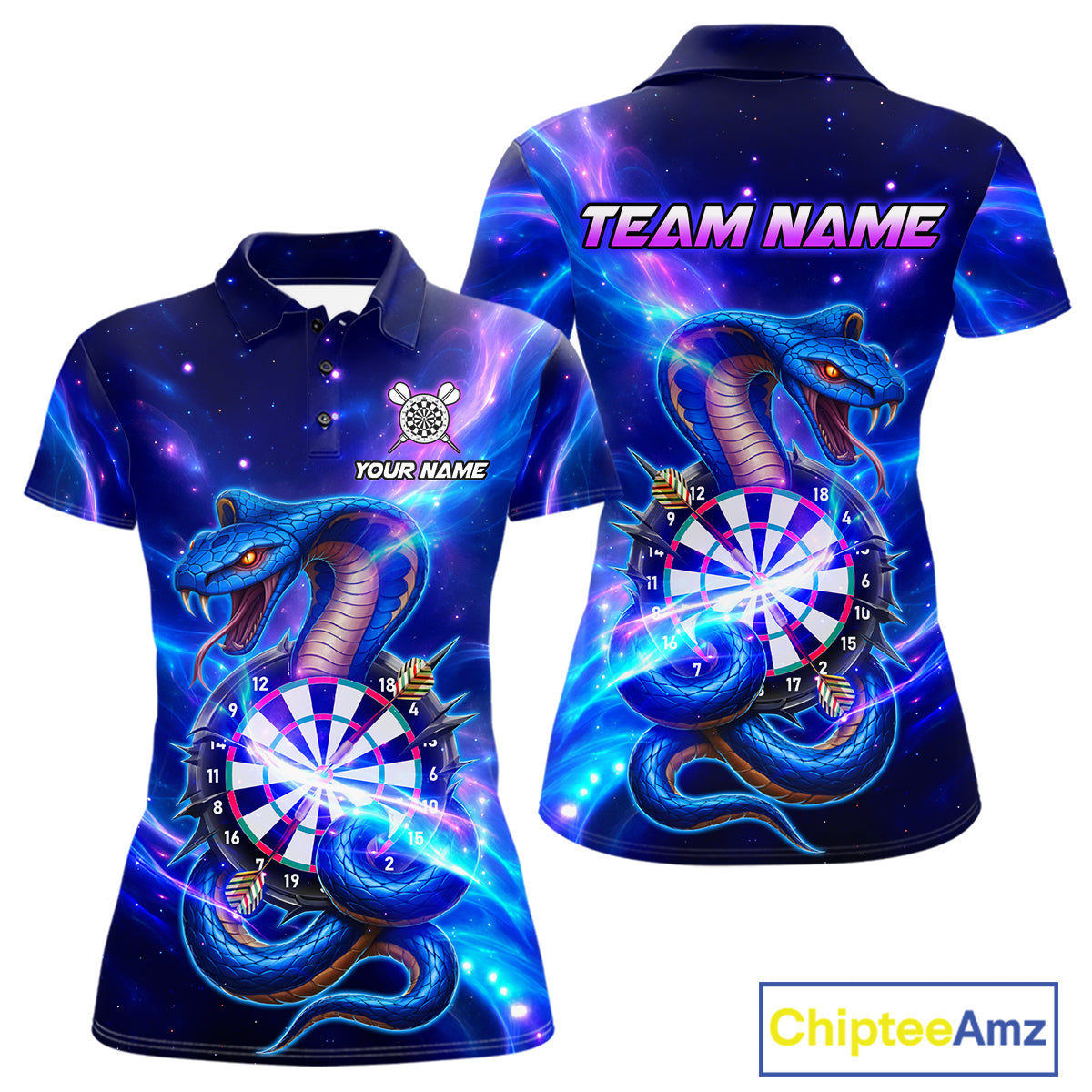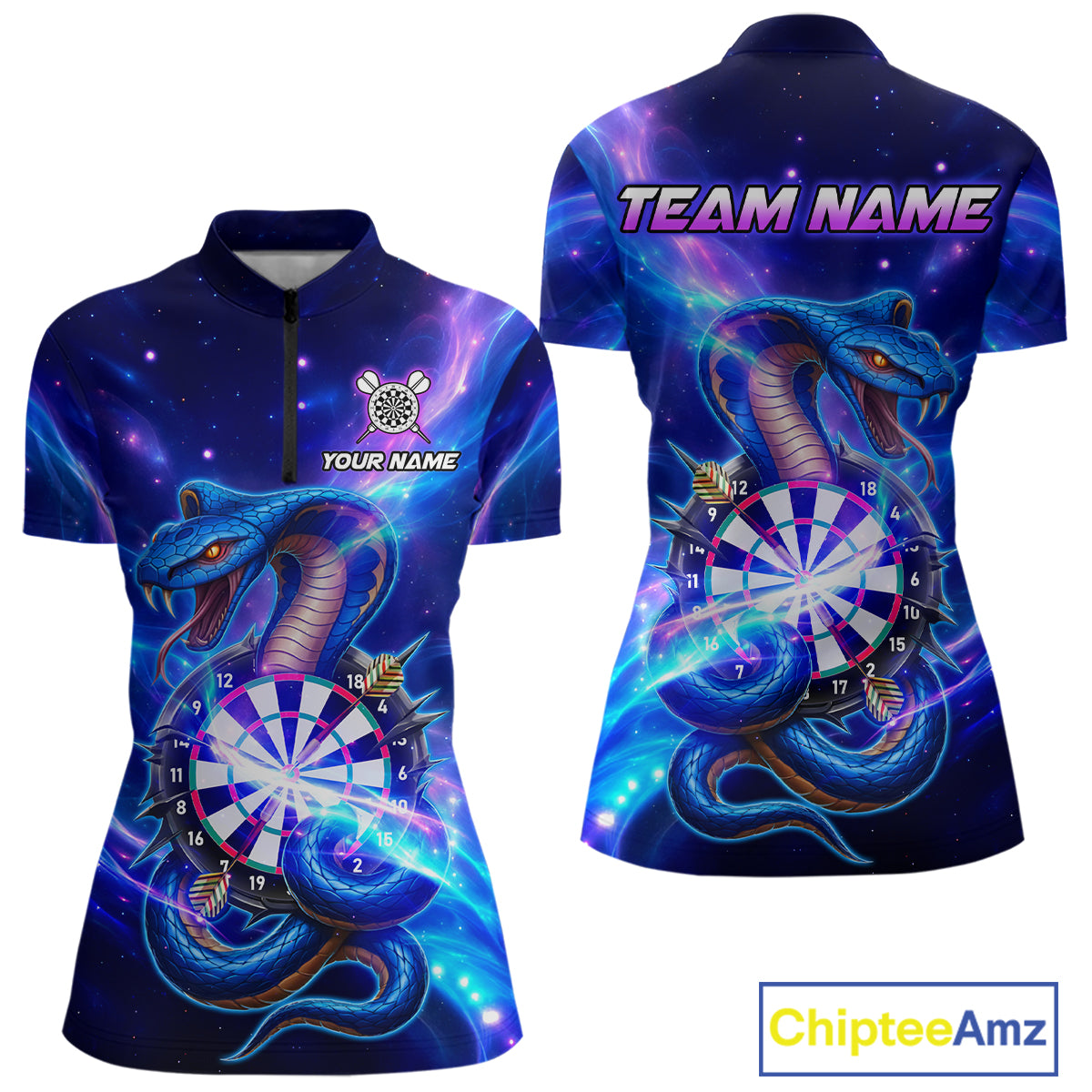 Galaxy Blue Custom Cobra Snake Darts Shirt For Women, Darts League Jersey Team Polo & 1/4 Zip TDM5274
