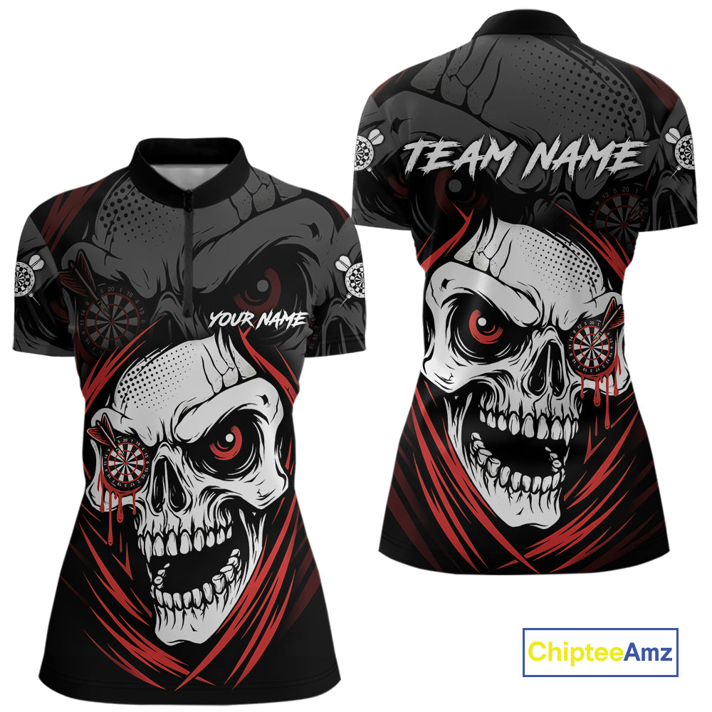 Personalized Funny Skull Darts Shirts For Women Custom Darts Jersey Team Polo & Quarter Zip | Red TDM5295