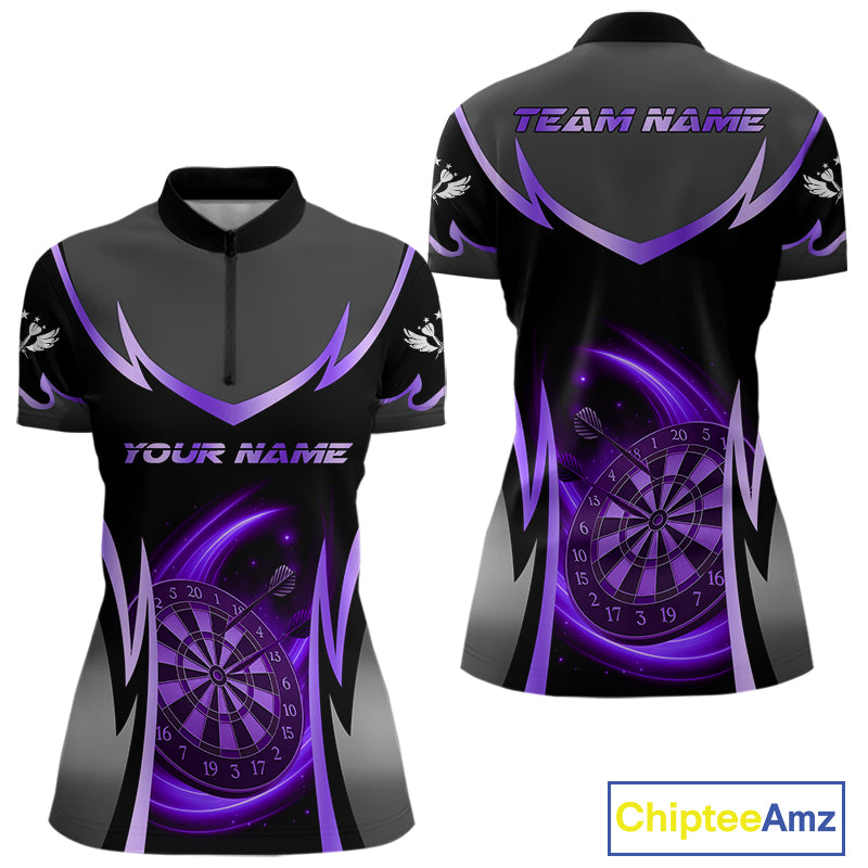 Purple Dartboard Lightning Darts Polo & 1/4 Zip Custom Darts Shirt For Women, Darts Team Jersey TDM5335