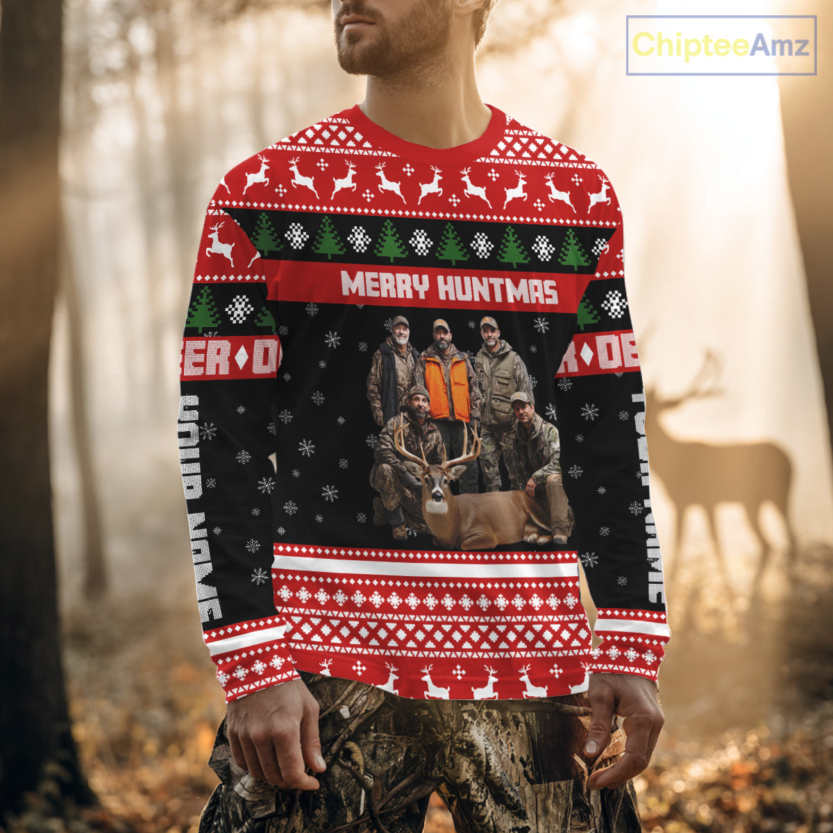 Custom Merry Huntmas Shirt – Personalized Deer Hunting Christmas Shirt with Your Photo NHT308