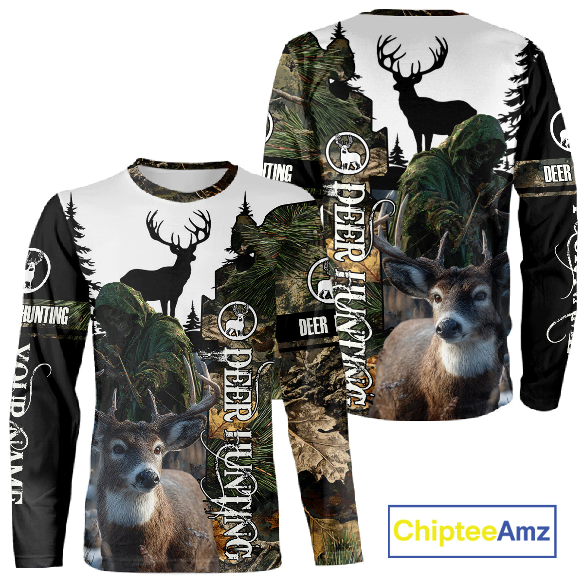 Deer Hunting 3D Shirt All-Over Print with Deer Buck, Grim Reaper Camouflage For Deer Hunters NHT24