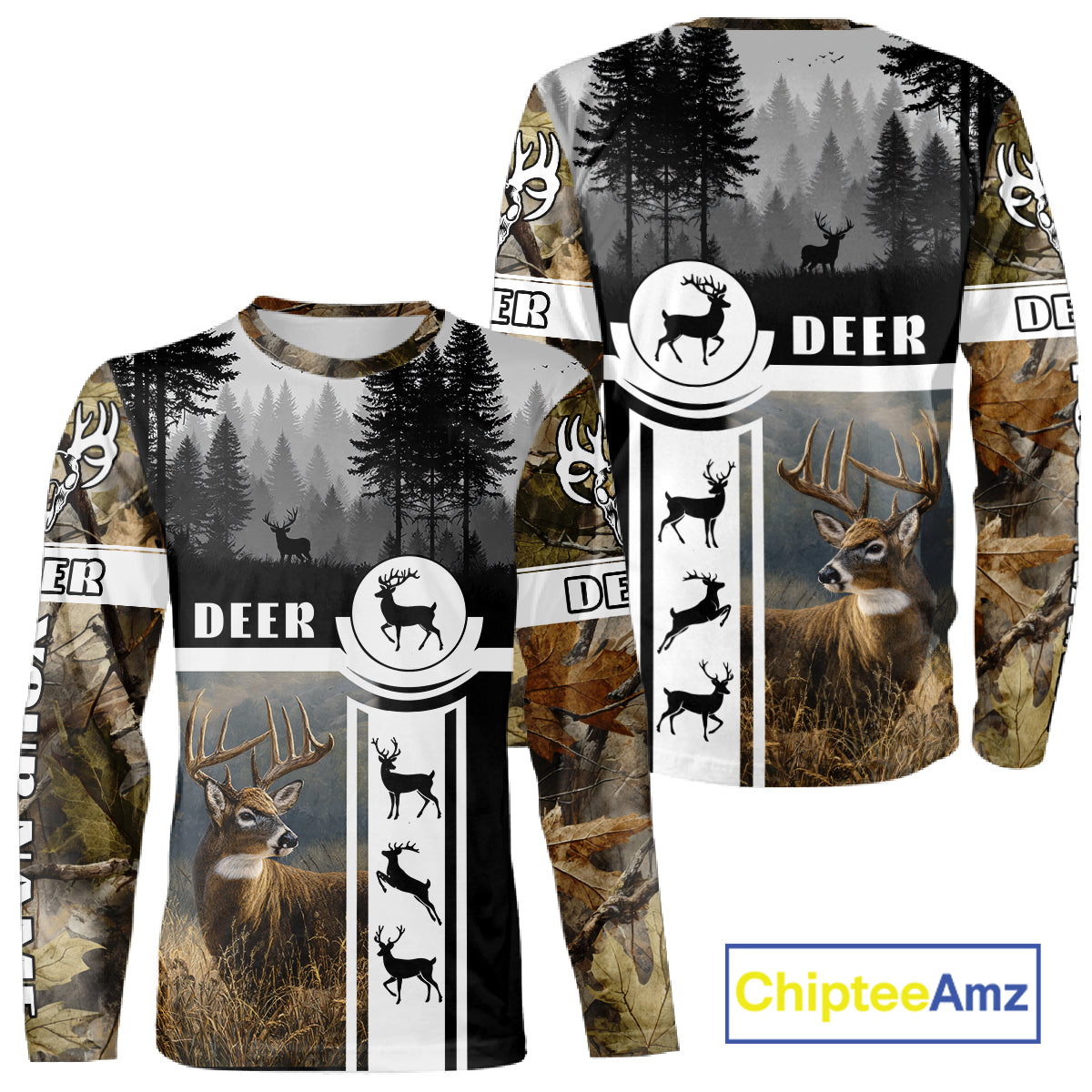 Designed for deer hunters and outdoor enthusiasts, this shirt blends style, comfort, breathable and funtionality in one. The unique hunting-inspired design can be personalized with your name, along with details like the American flag, camouflage patterns, and more - making it the perfect gift ideas for hunters during deer hunting season.ย