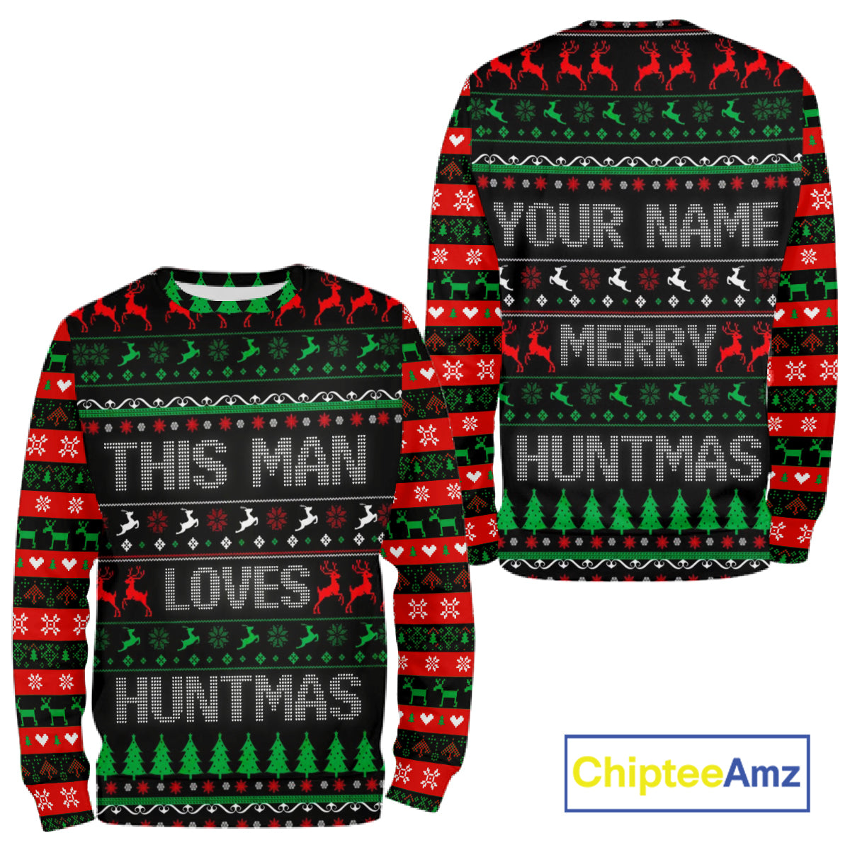 Deer Hunting Funny Ugly Christmas Sweatshirt Full Print Shirts Christmas Pattern, Christmas Gift NBT301