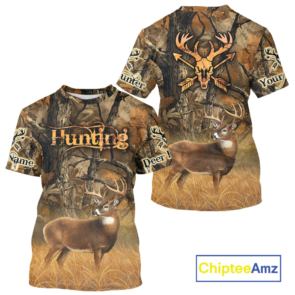 Whitetail Deer 3D All Over Printed Fall Season Camo Custom Name Best Gifts for Hunters NBT69
