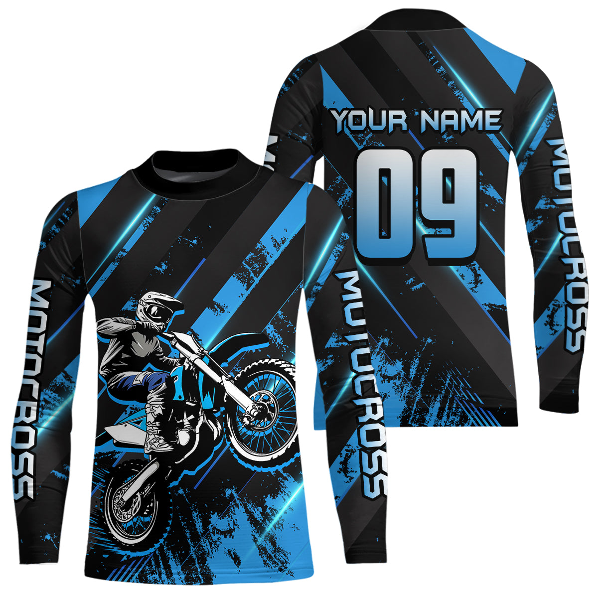 Adult&Kid Custom Blue Dirt Bike Jersey Motocross Shirt Upf30+ Motocross Shirt| CTP96