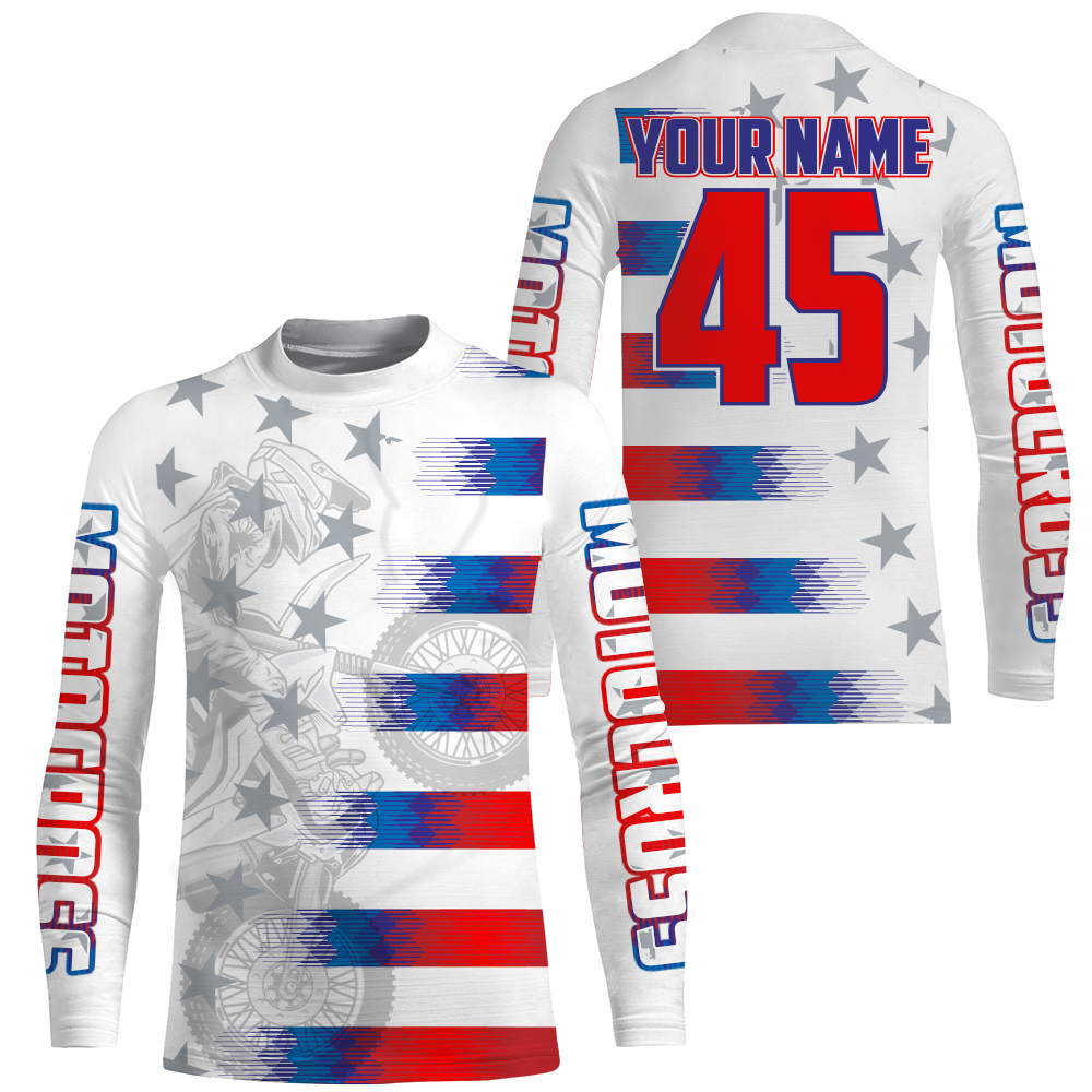 Adult&Kid Motocross Jersey Personalized UPF30+ American Flag Dirt Bike Off-Road Shirt MX Motorcycle PDT704
