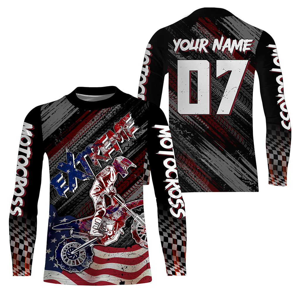 American Flag Motocross Jersey UPF30+ Youth Dirt Bike Shirt Patriotic Extreme MX Racing Shirt XM123