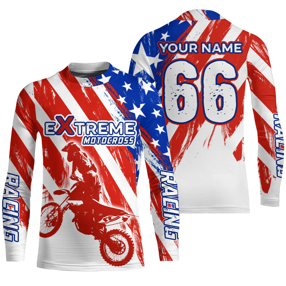 American Flag Motocross Racing Jersey UPF30+ Youth Women Men Kid Dirt Bike Shirt Patriotic XM104
