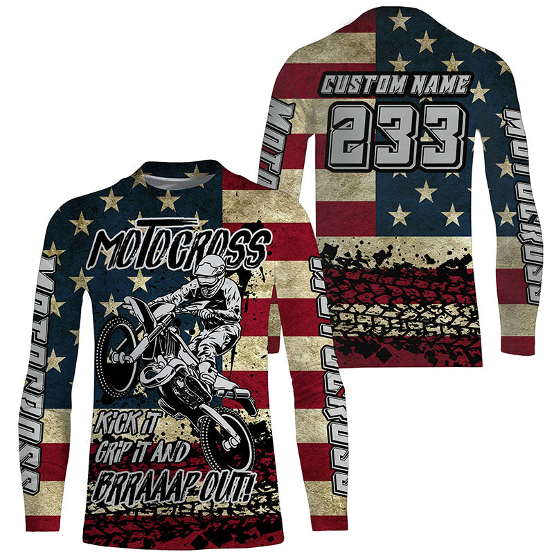 American Flag Personalized Motocross Jersey UPF30+ Patriotic Dirt Bike Racing Motorcycle Shirt NMS1239