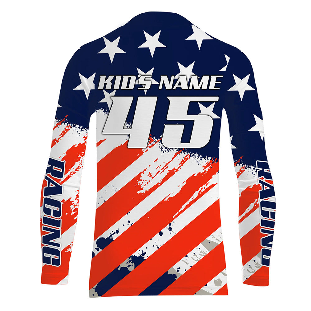 American Flag Racing Jersey UPF30+ Youth Motocross Shirt USA Custom Dirt Bike Shirt Boys Girls Men XM10