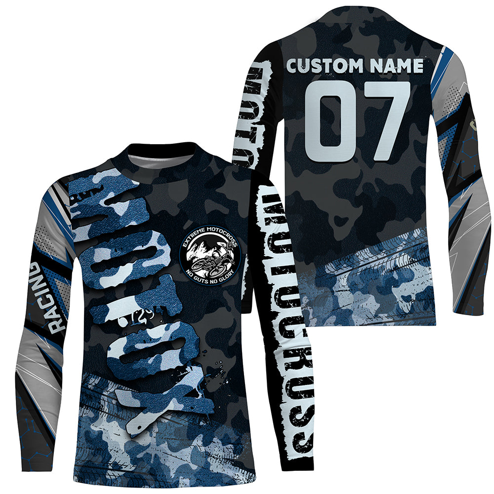 Blue Camo Custom Motocross Jersey UPF30+ No Guts No Glory Dirt Bike Shirt MX Racing Adult&Kid NMS1445