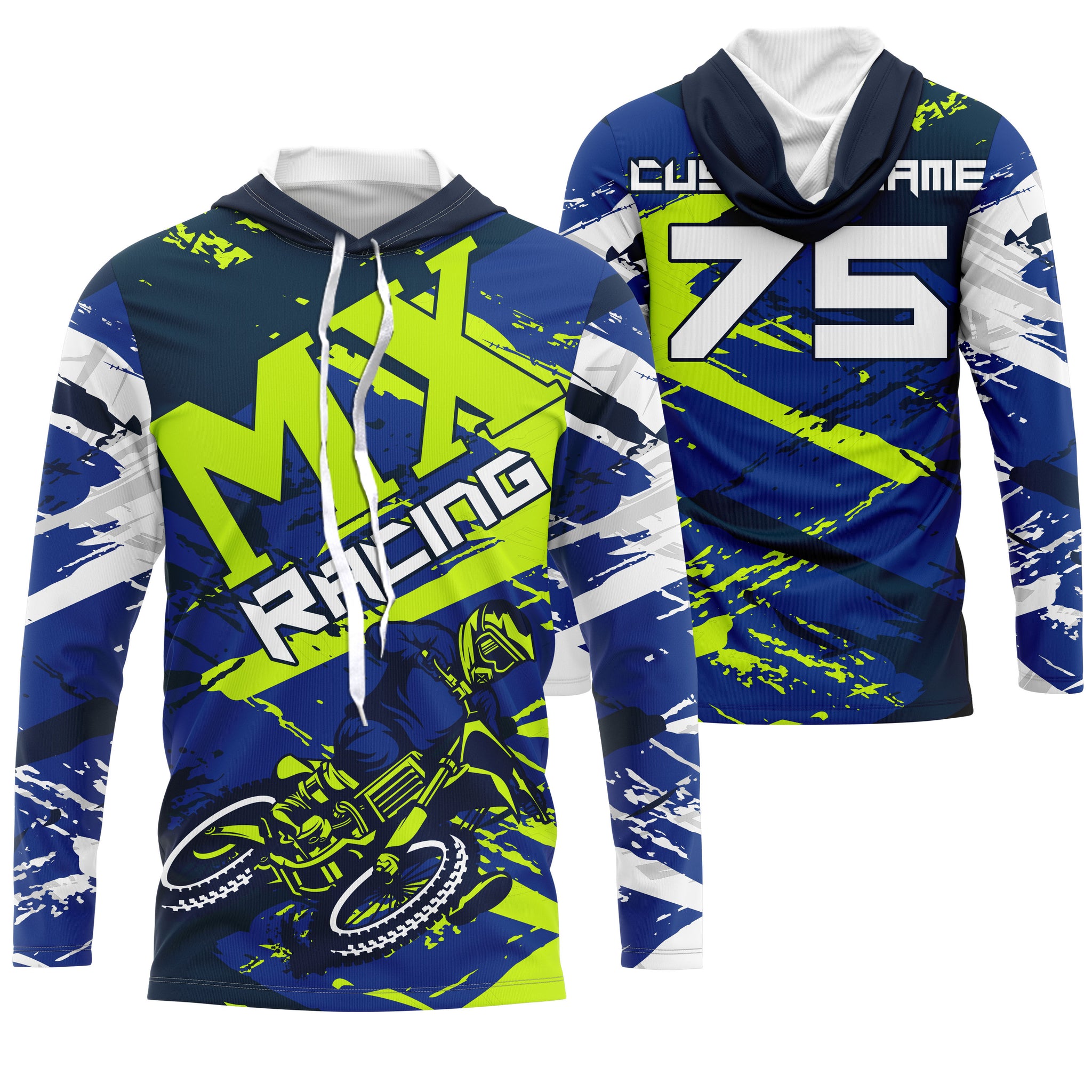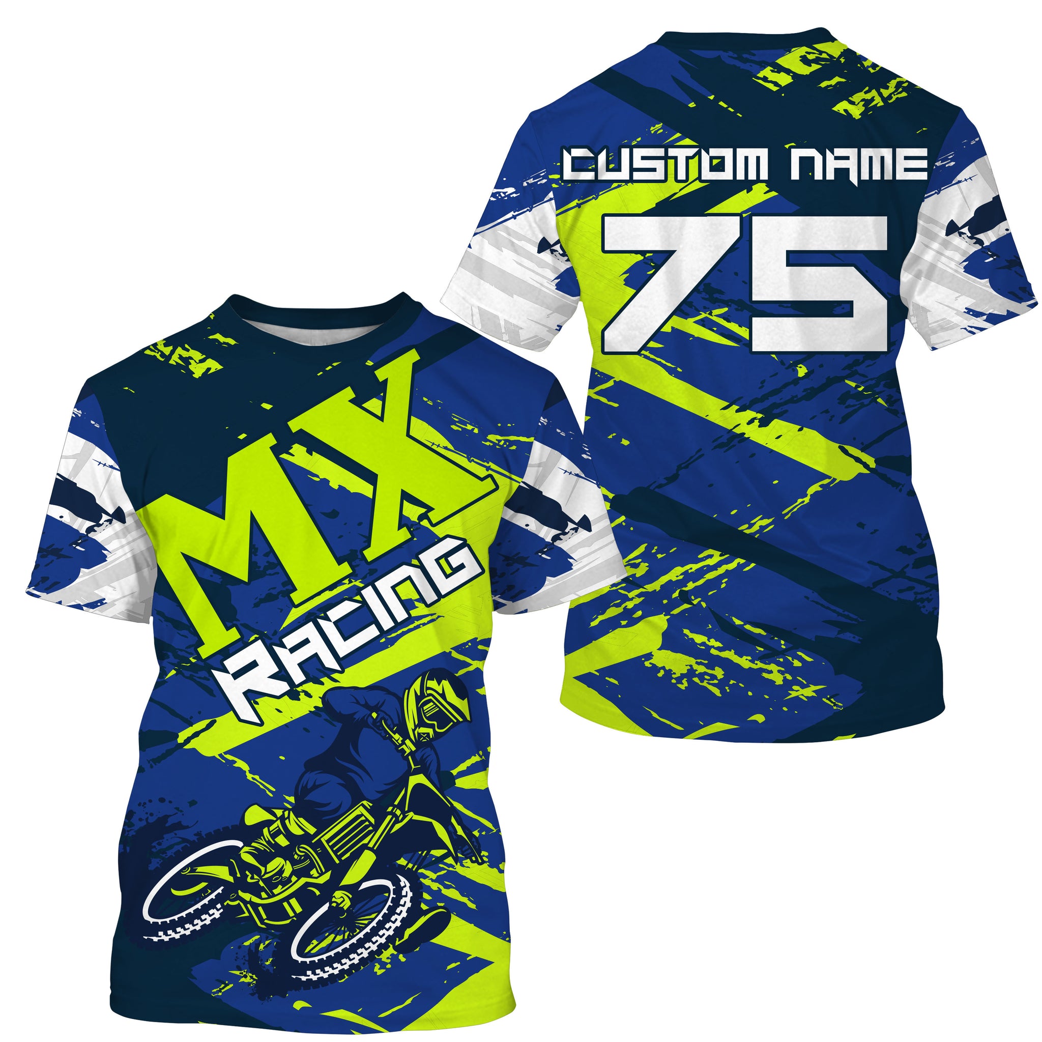 Blue Motocross jersey dirt bike custom shirt UPF30+ for kid men women MX racing off-road racewear PDT103