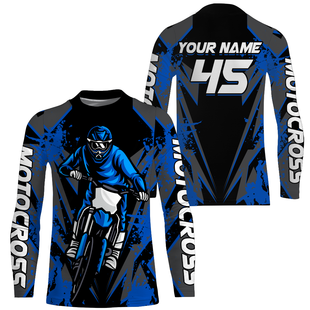 Blue Motocross Racing Jersey Youth UPF30+ Dirt Bike Shirt Off-Road Kid Men Long Sleeves XM152