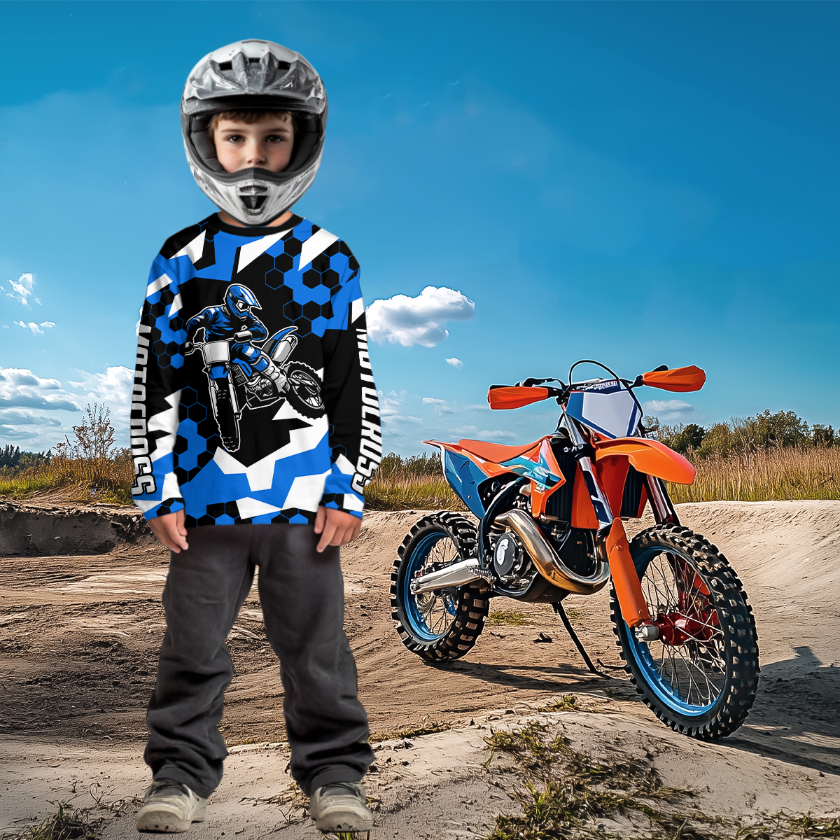 Custom Blue Motocross Jersey Racing Shirts for Men Kid Women Dirt Bike Shirts XM346