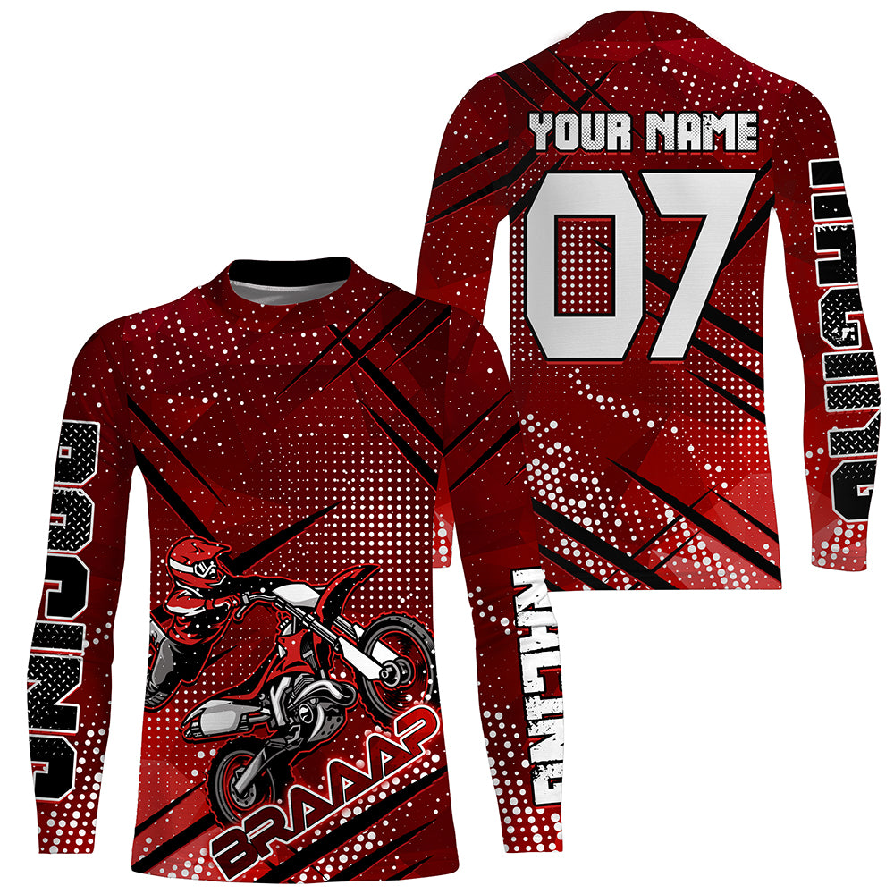 Custom Dirt Bike Jersey Red UPF30+ Braaap Motocross Shirt Men Women Kid MX SX Riding Motorcycle PDT552