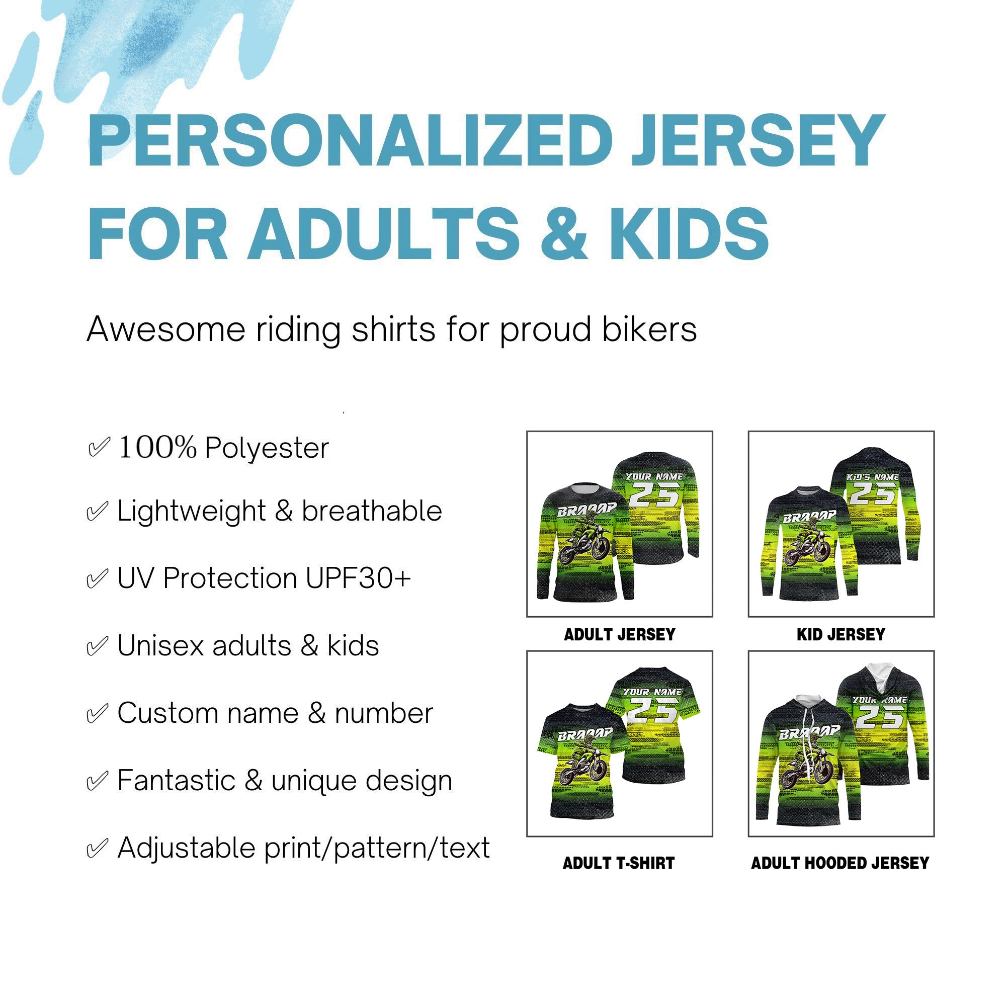Custom dirt bike jersey youth kid adult UPF30+ MX racing green Motocross off-road shirt motorcycle PDT112