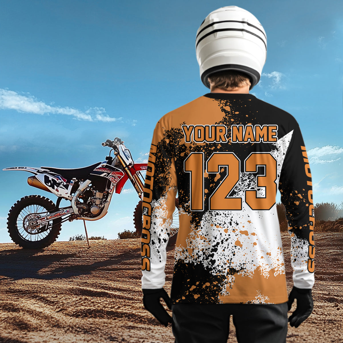 - PERSONALIZED MOTOCROSS JERSEY: This super cool long-sleeved shirt is exactly what all bikers are looking for. Add your name/number to make it a unique one that bears your own imprints.