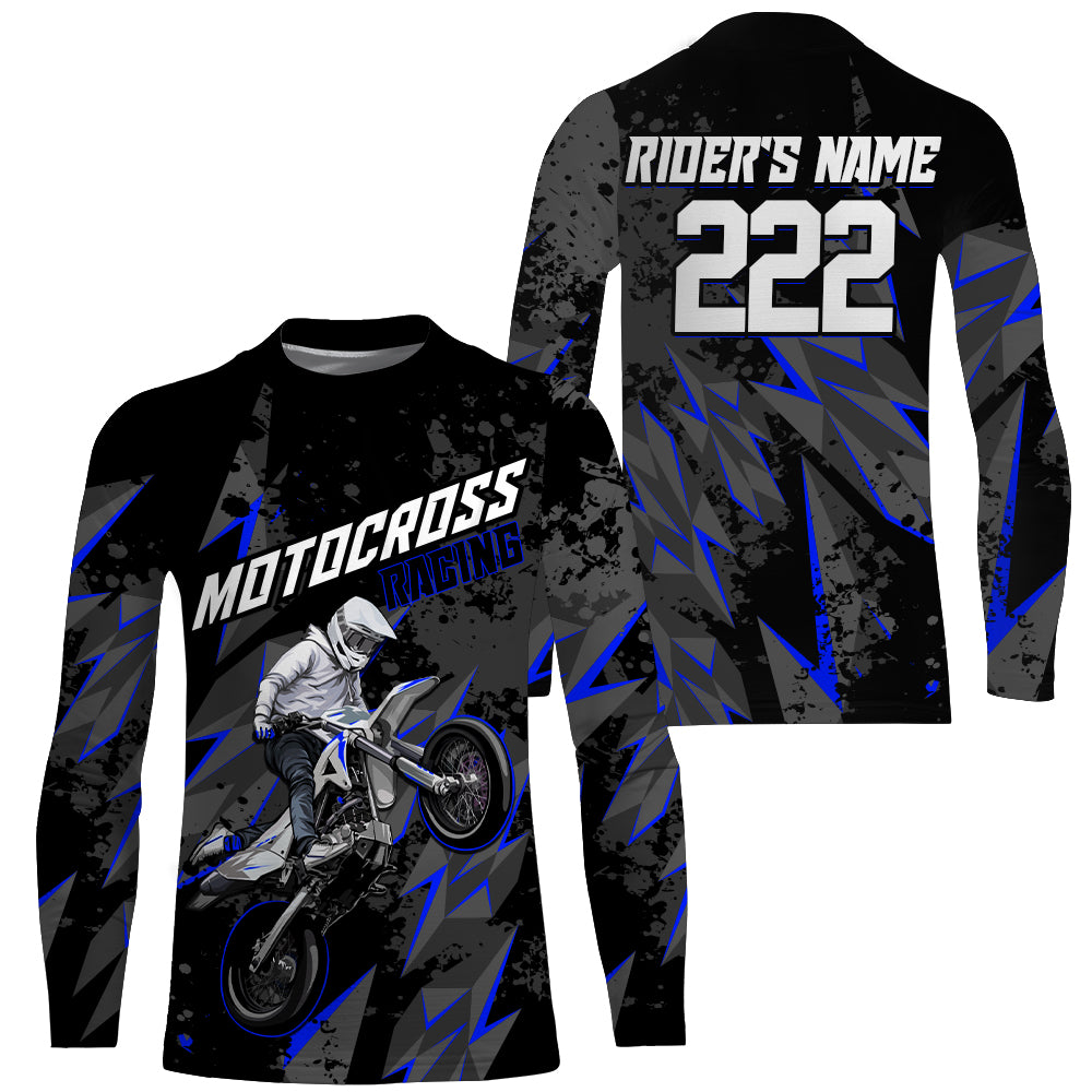 Custom Motocross Jersey Kid Men Women UPF30+ Blue Dirt Bike Shirt MX Riding Off-Road Motorcycle PDT628