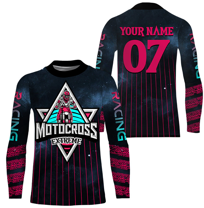 Custom Motocross racing jersey kid adult extreme UPF30+ motorcycle pink dirt bike shirt off-road PDT306