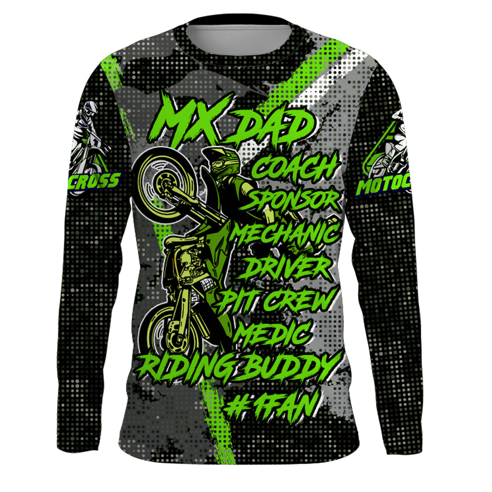 Custom MX Dad Jersey UPF30+ Green Dirt Bike Shirt Motocross Racing Long Sleeves PDT493