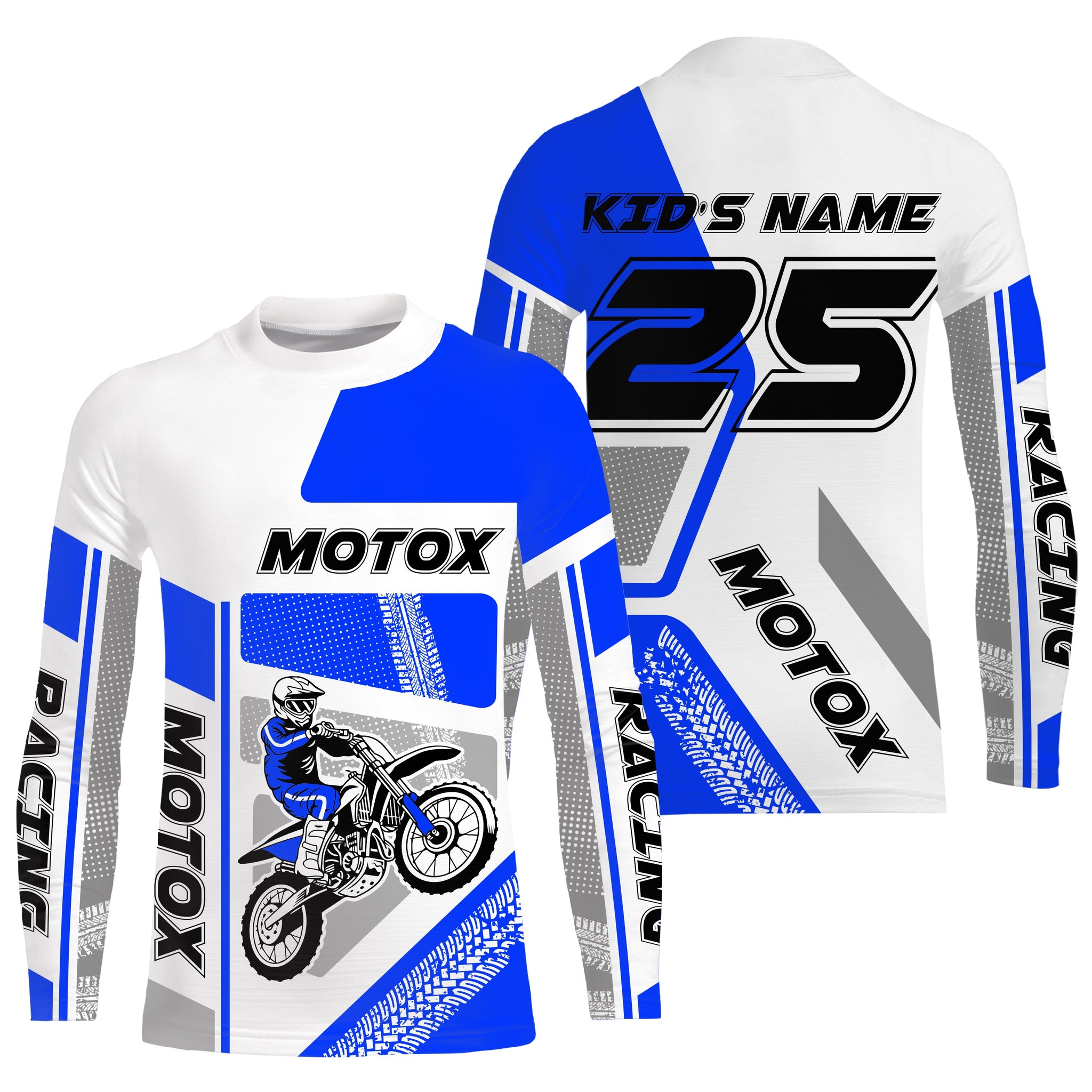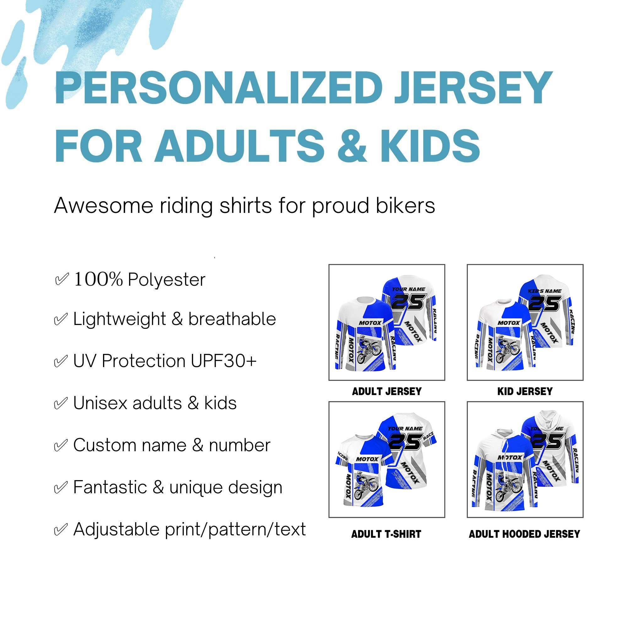 Customizable dirt bike jersey youth kid adult UPF30+ blue riding Motocross off-road extreme shirt PDT75