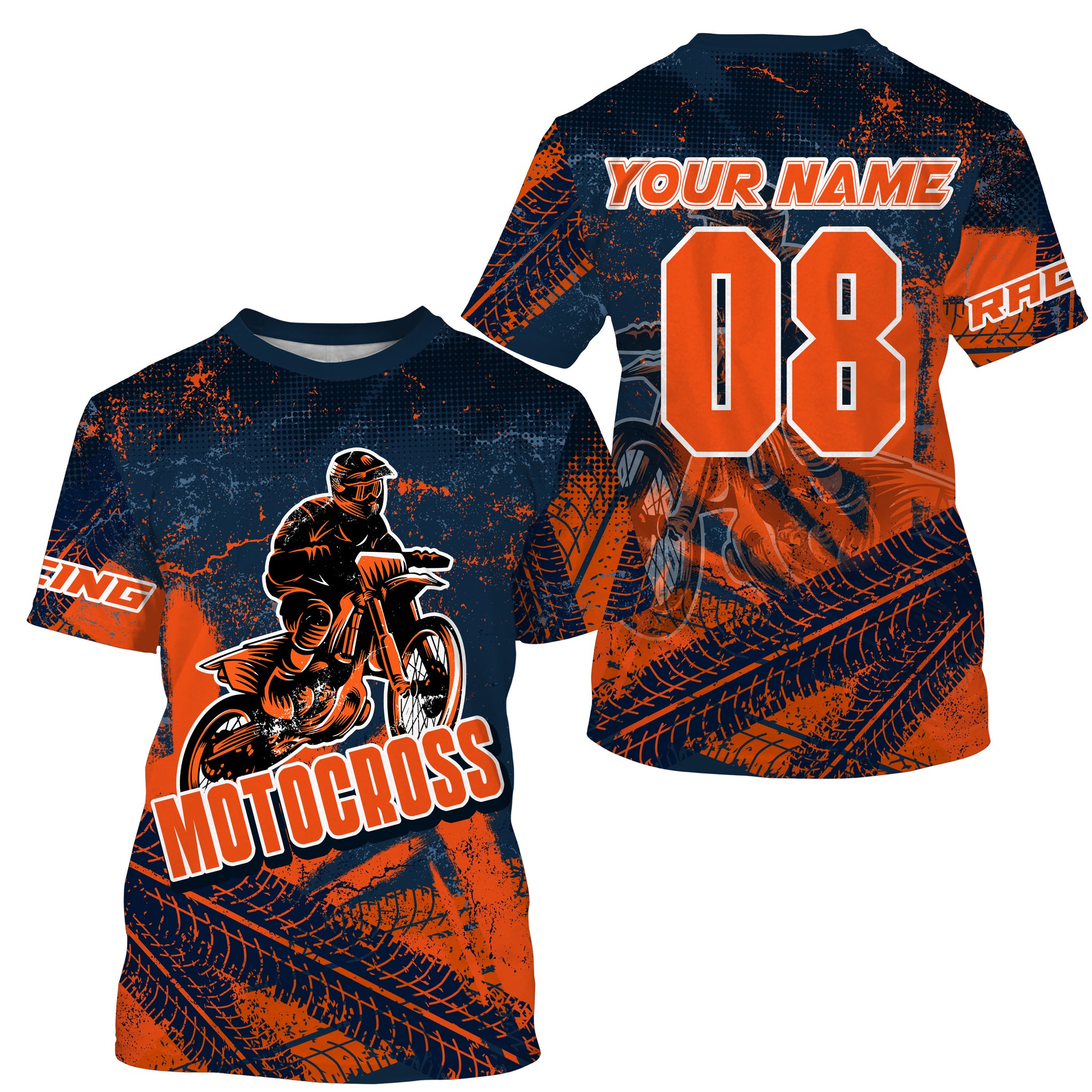 Dirt bike jersey for kids boys girls orange Motocross custom racing UPF30+ off-road riding shirt PDT116