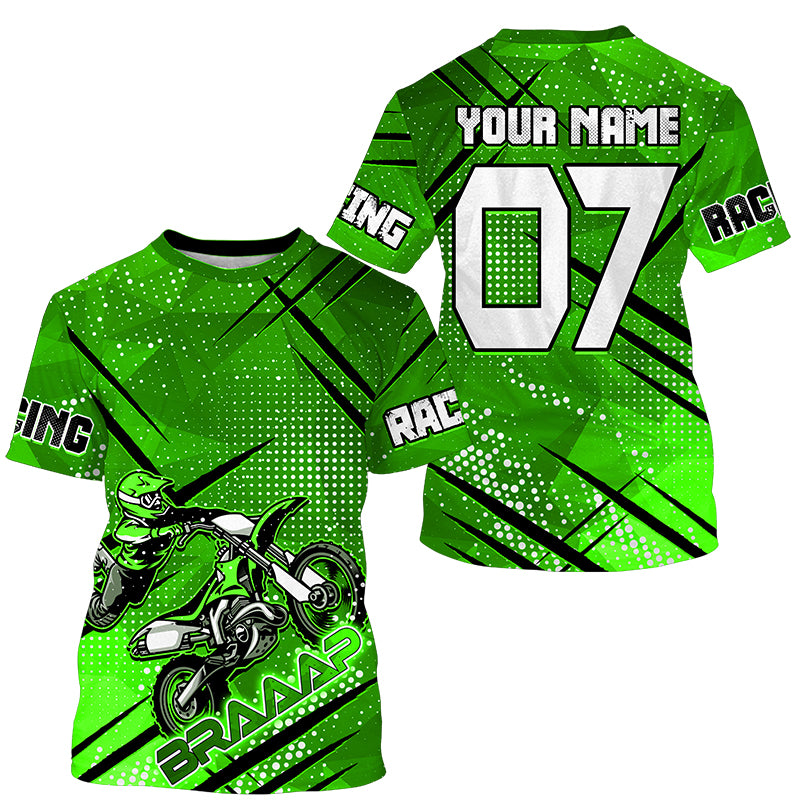 Dirt bike racing jersey custom green Motocross youth men women UPF30+ off-road extreme MX shirt PDT335