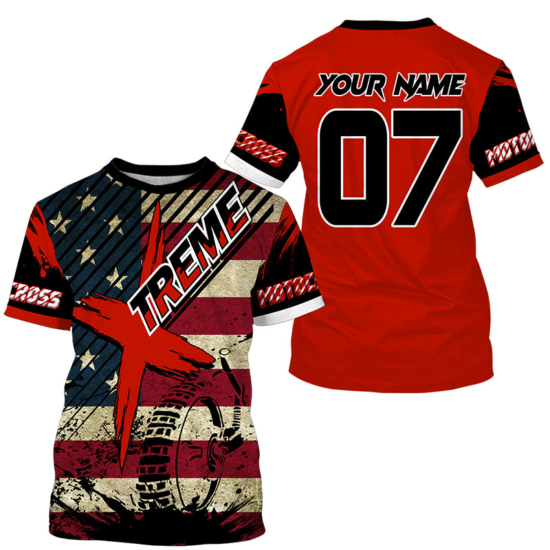 Extreme custom Motocross jersey UPF30+ American flag dirt bike racing kid women men off-road shirt PDT272