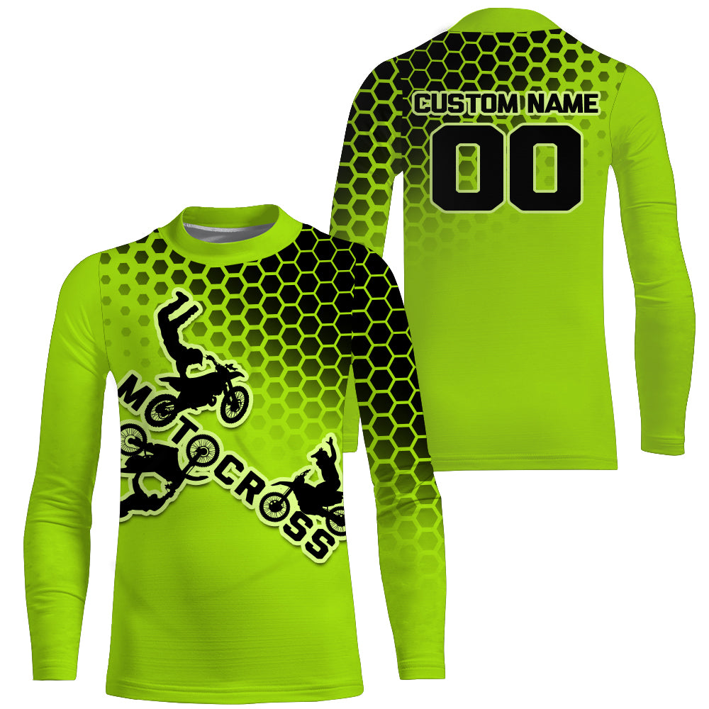 Green Motocross Jersey Personalized UPF30+ Dirt Bike Riding Shirt Men Women Kid MX Jersey Off-Road PDT541