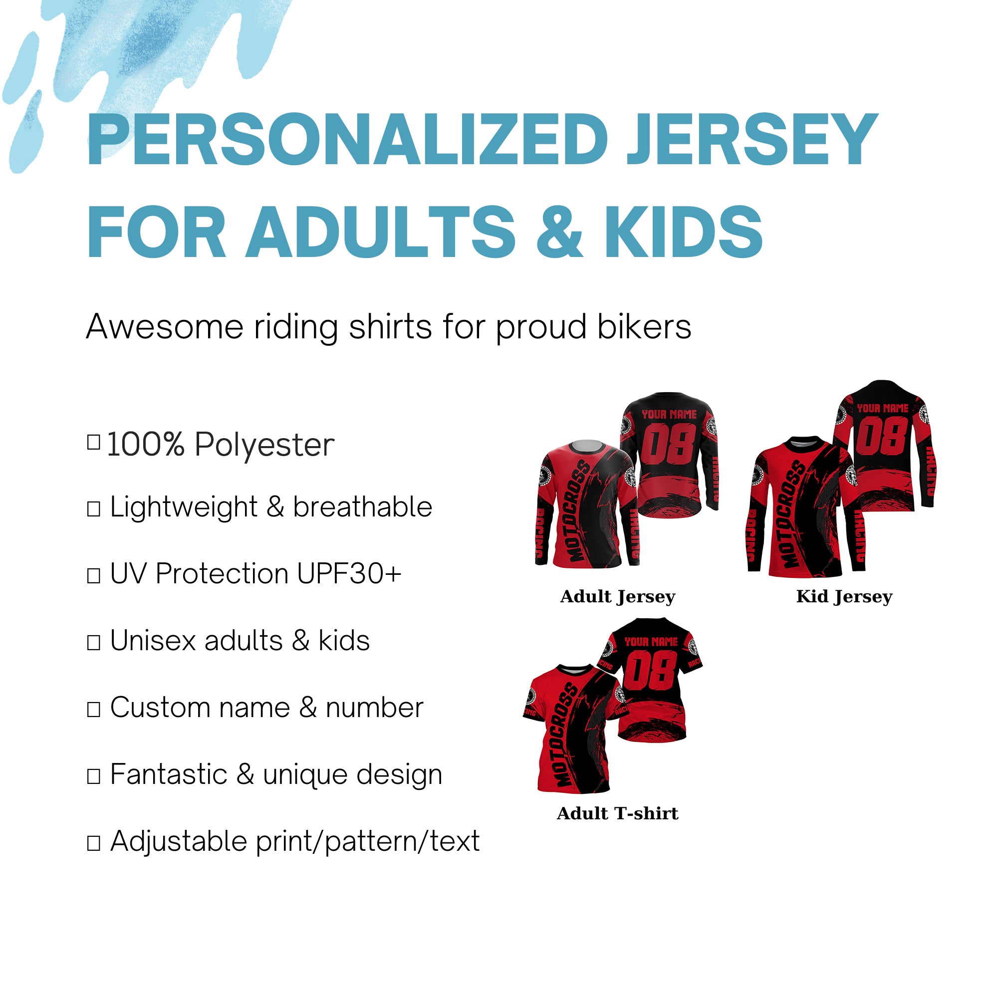 Kid&adult red motocross jersey custom youth Dirt Bike upf30+ off-road shirt biker motorcycle PDT419