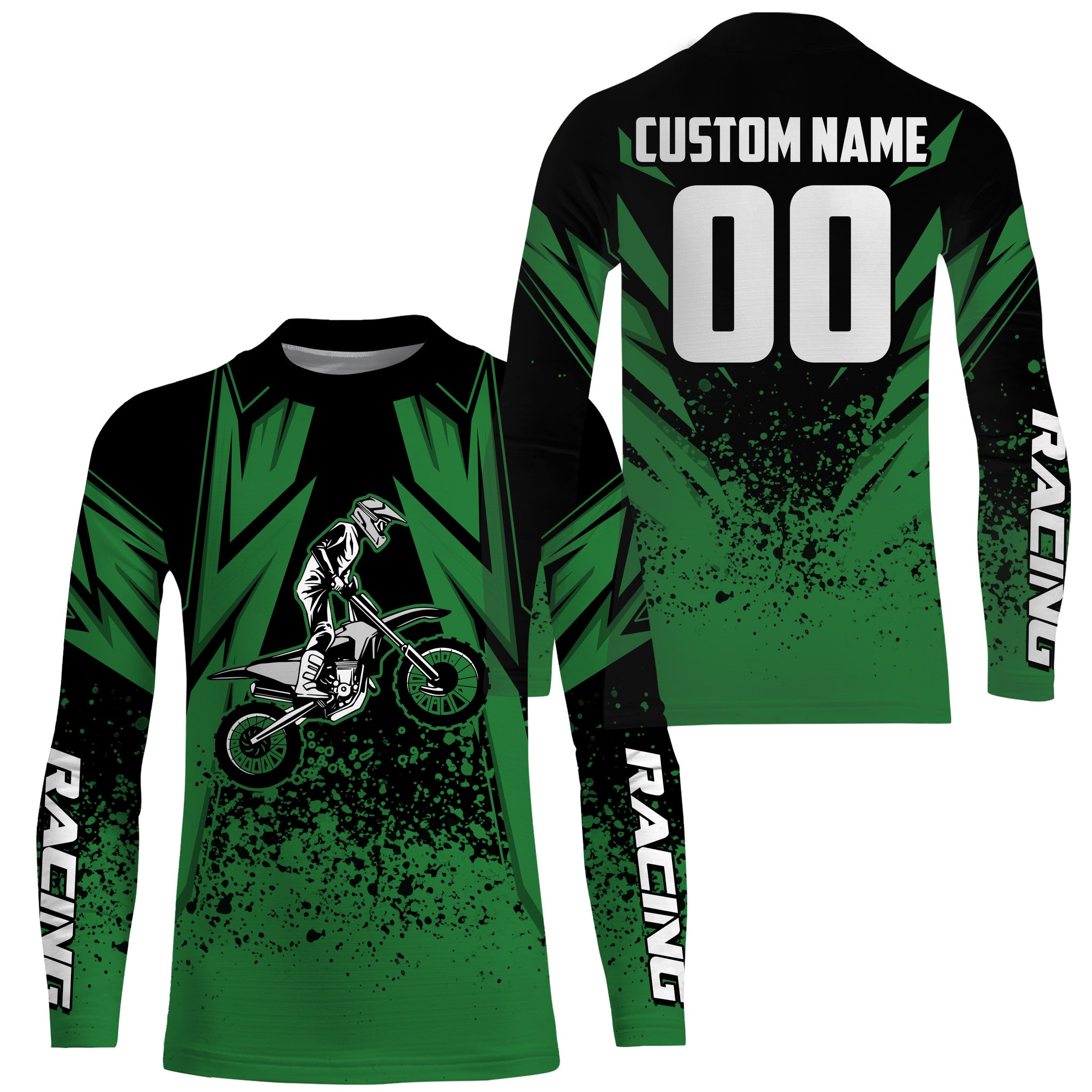Kid Men Women Motocross Jersey Personalized UPF30+ Green Dirt Bike Shirt Off-Road Motorcycle PDT636
