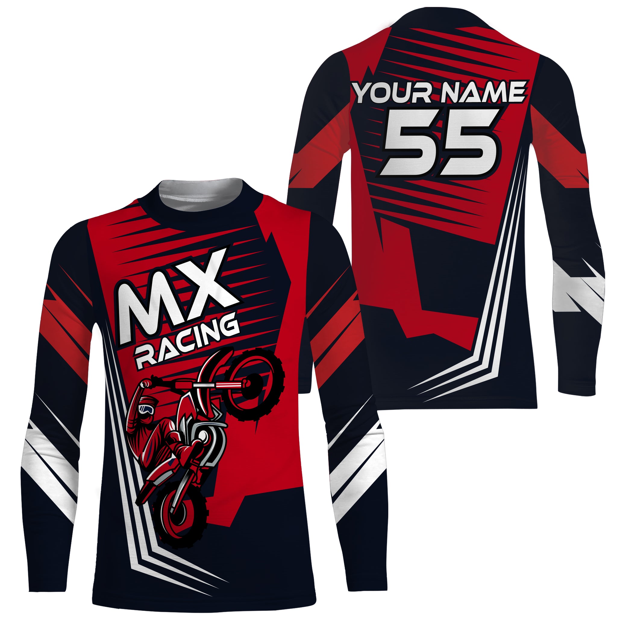 Kid Men Women Motocross Jersey Personalized UPF30+ Red Dirt Bike Off-Road Jersey Motocross Shirt PDT657