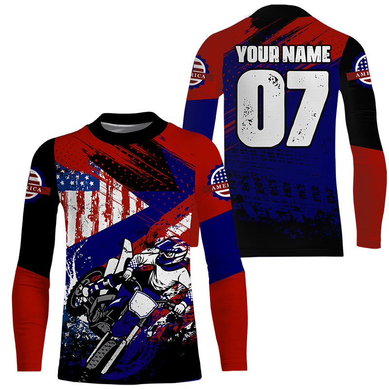 Kid youth adult dirt bike jersey custom UPF30+ USA flag Motocross racing shirt off-road motorcycle PDT274
