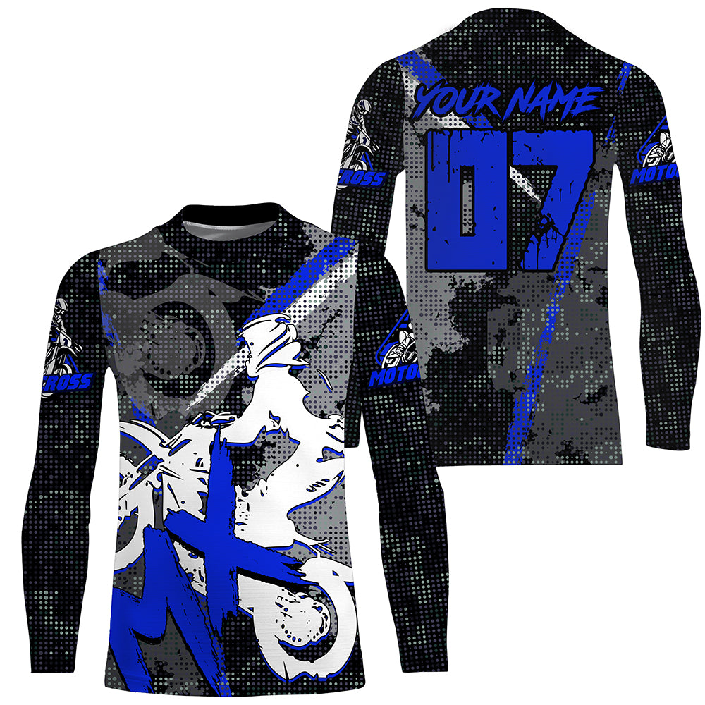 Kids Men Women Custom Blue Motocross Off-Road Jersey UPF30+ Extreme MX Dirt Bike Shirt Motorcycle PDT612