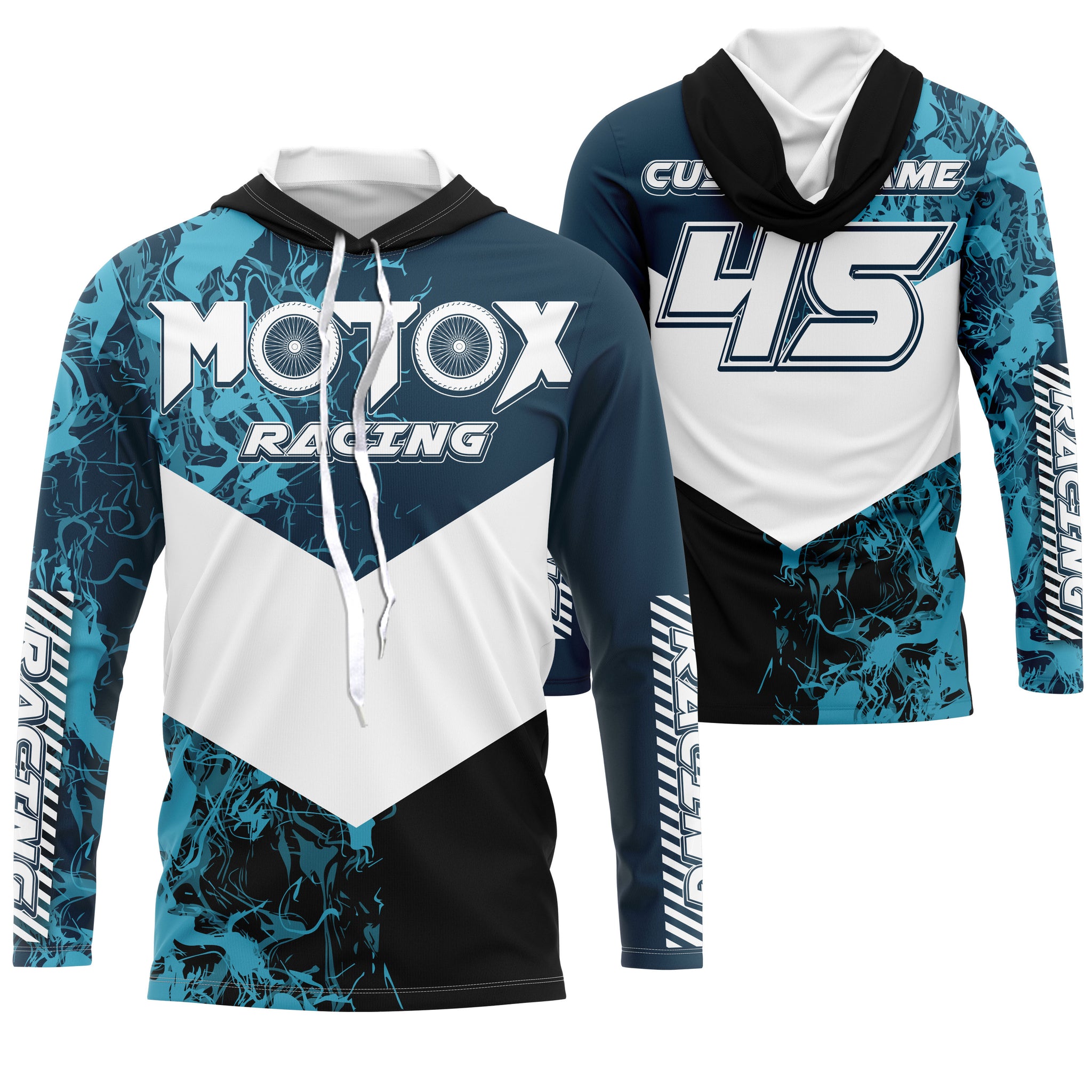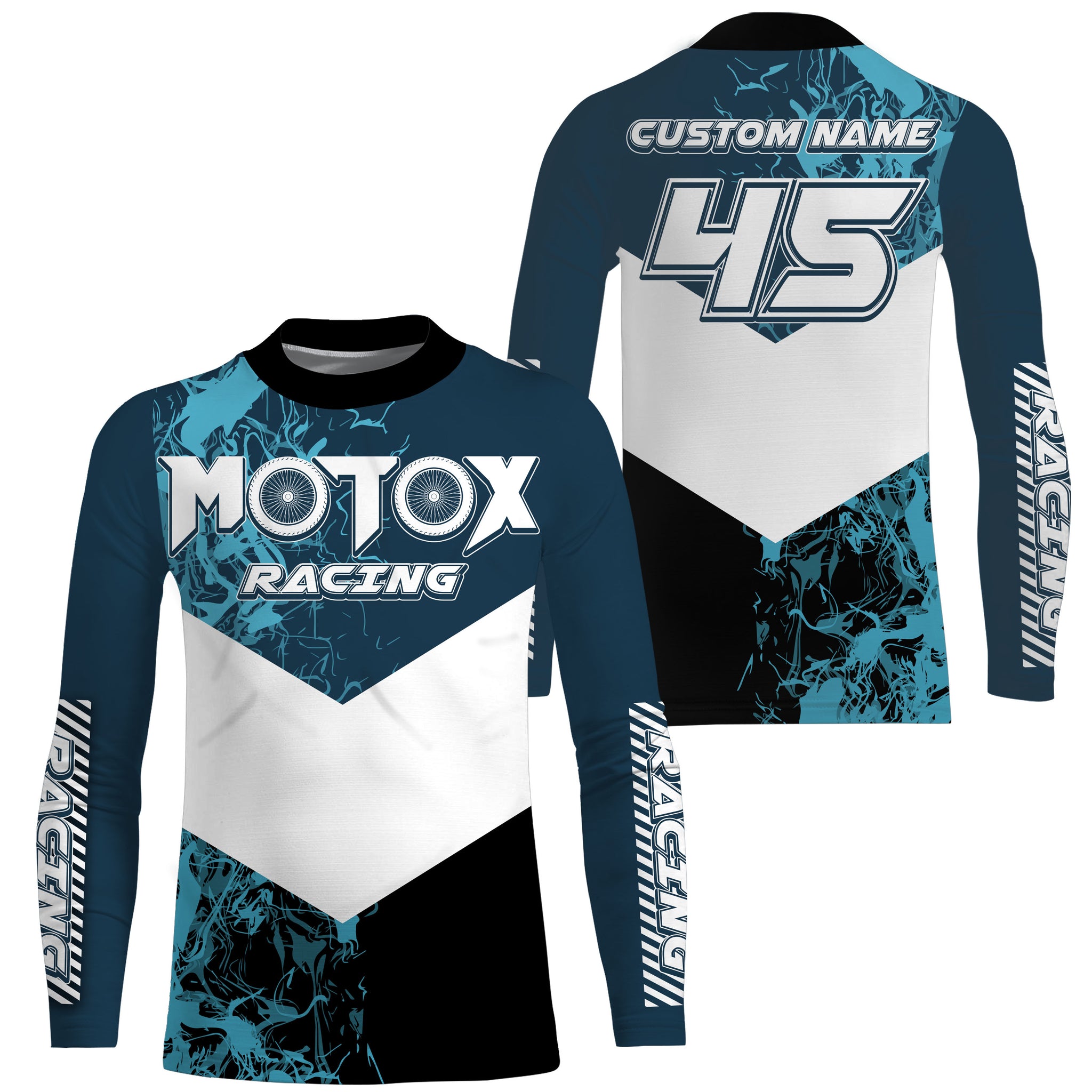 Kids men women custom motocross jersey UPF30+ blue MotoX racing off-road dirt bike riding shirt PDT114