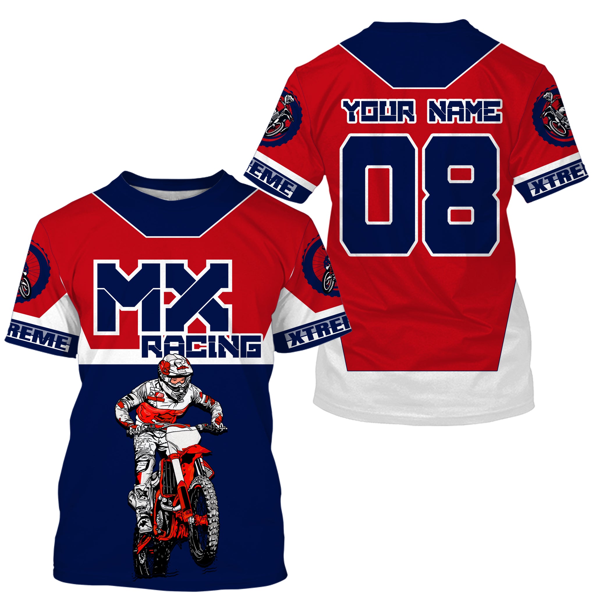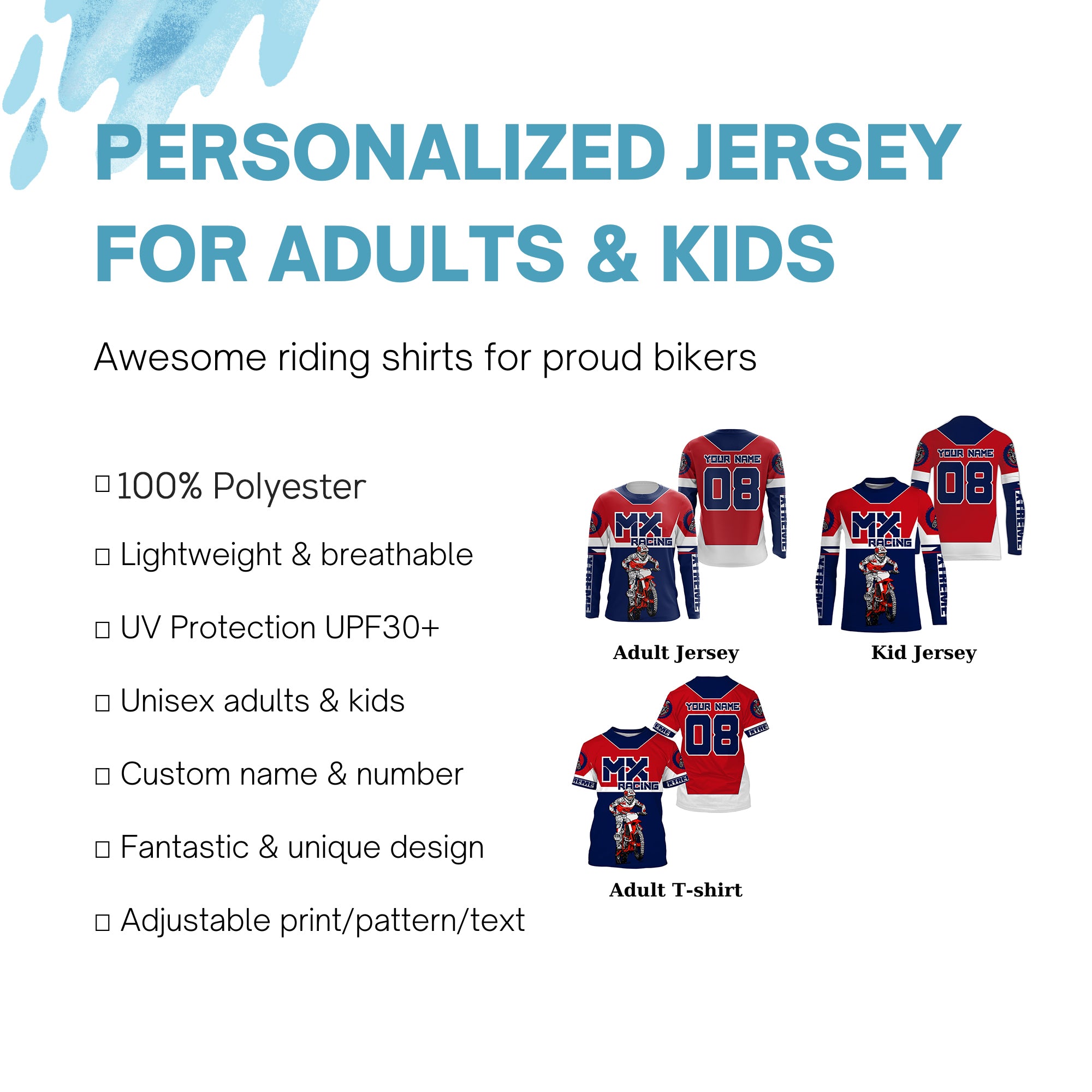 Men women youth dirt bike racing jersey UPF30+ blue red Motocross custom off-road extreme shirt PDT208