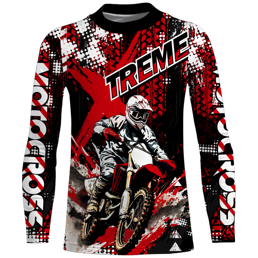 Motocross Jersey Red UPF30+ Youth Xtreme Dirt Bike Shirt Kids Men Off-road MX Racing XM135