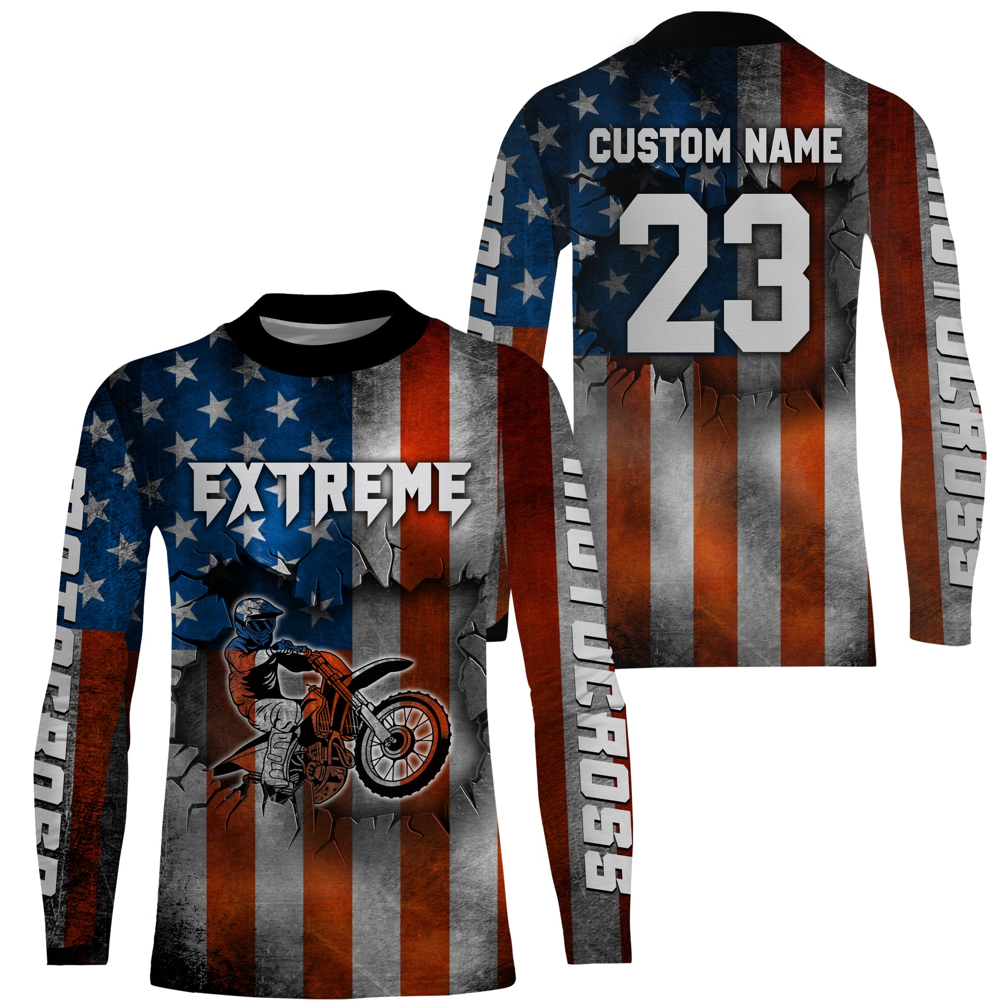 Motocross Jersey UPF30+ American Flag Dirt Bike Racing Adult&Kid Extreme Off-Road Shirt XM62