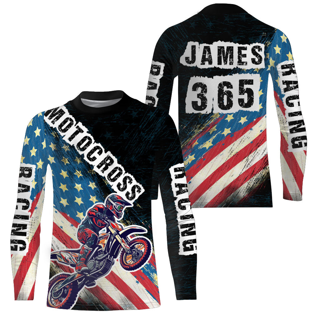 Motocross Jersey UPF30+ American Flag Dirt Bike Racing Shirt Off-Road Rider Racewear Long Sleeves XM70