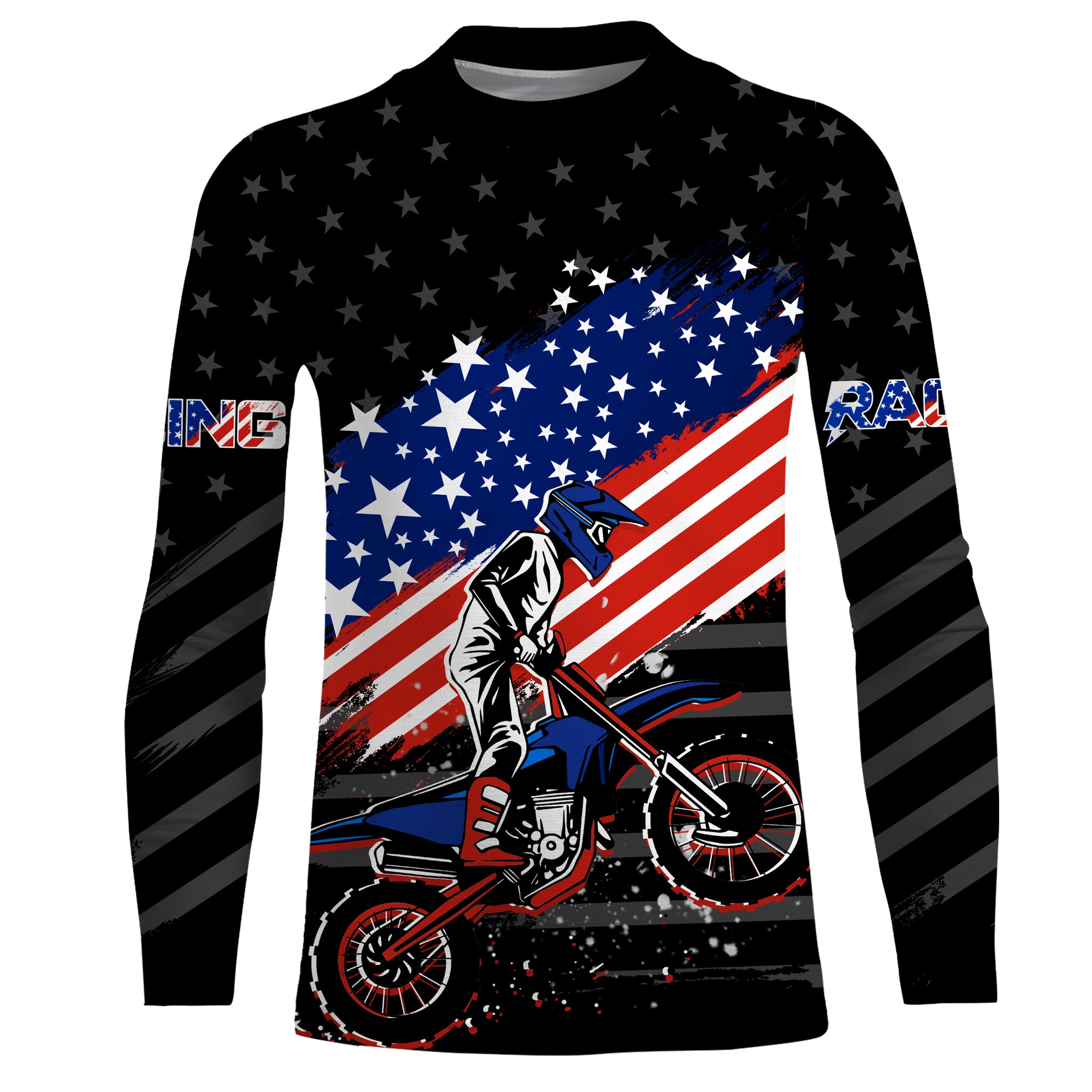Motocross Jersey UPF30+ American Flag Dirt Bike Racing Shirt Youth Off-Road Jersey Kid Men XM114