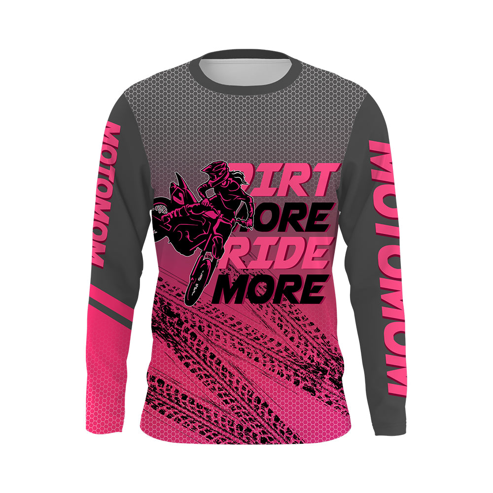 Motocross Mom Personalized Jersey UPF30+ Pink Dirt Bike Mom Racing Shirt Dirt More Ride More NMS1382